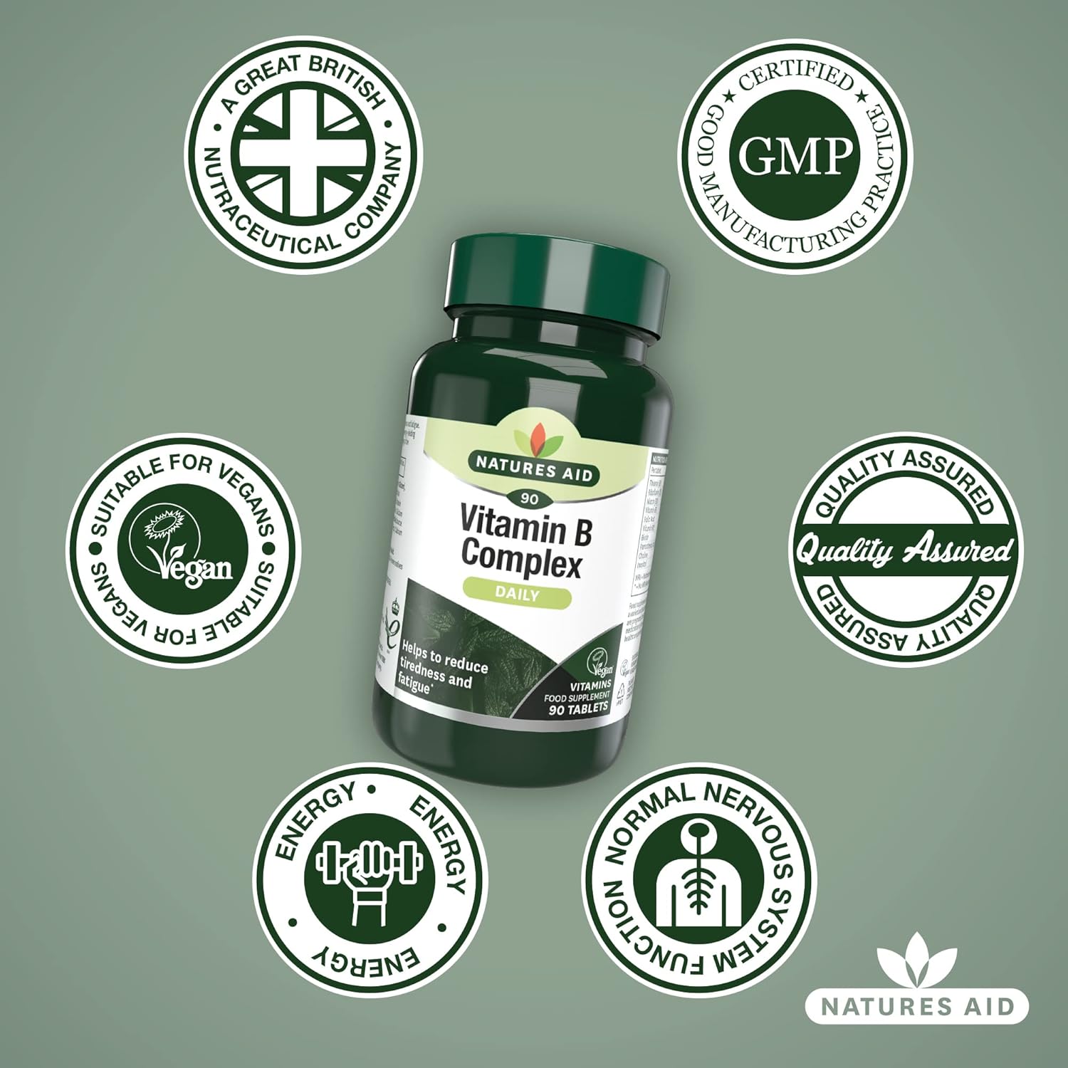 Natures Aid Vitamin B Complex 50 + C - High Strength B Vitamins With Vitamin C - Supports Energy, Nervous System & Immunity, Reduce Tiredness And Fatigue - Vegan, Gluten Free, Non-Gmo - 90 Tablets