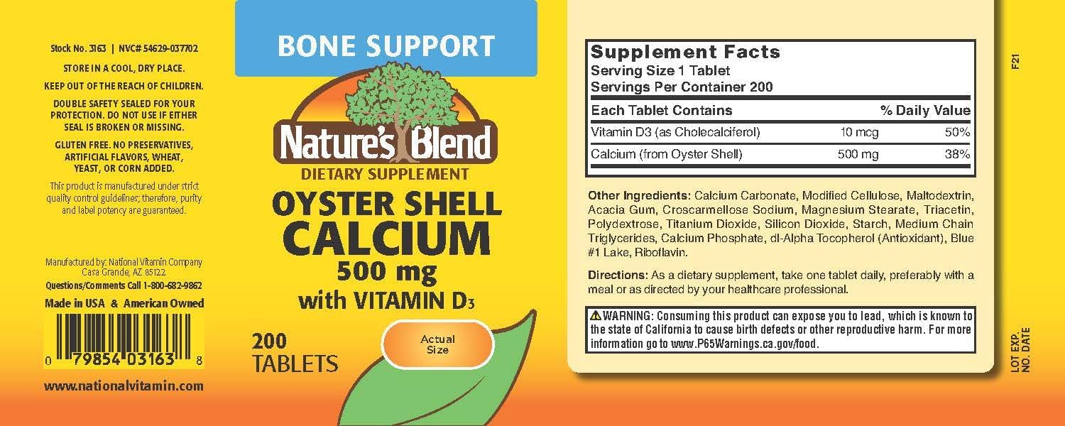 Nature'S Blend Oyster Shell Calcium With D3 200 Tabs