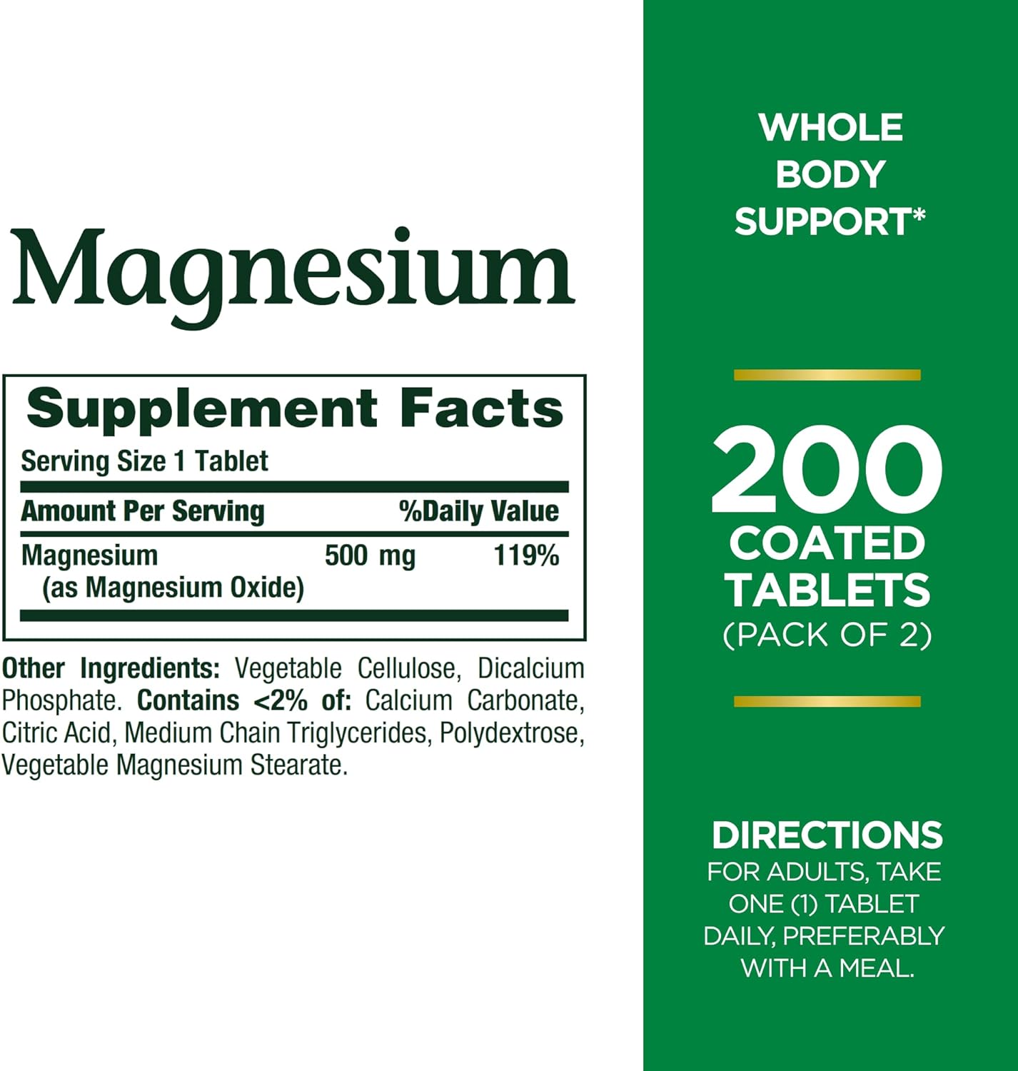 Easy To Take: Nature’S Bounty Magnesium Tablets Are Coated For Easy Swallowing; The Daily Serving Is Just One Tablet Per Day Making It Simple To Supplement Your Diet With Magnesium