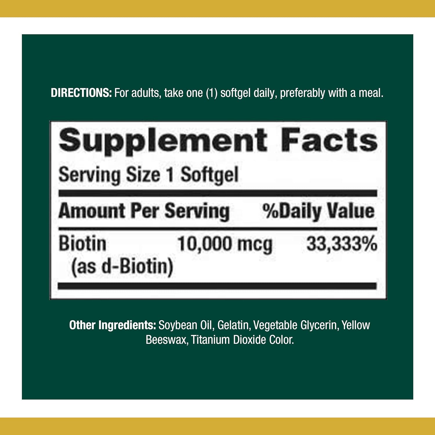 Nature'S Bounty Biotin 10,000 Mcg, Rapid Release Softgels 120 Ea (Pack Of 10)