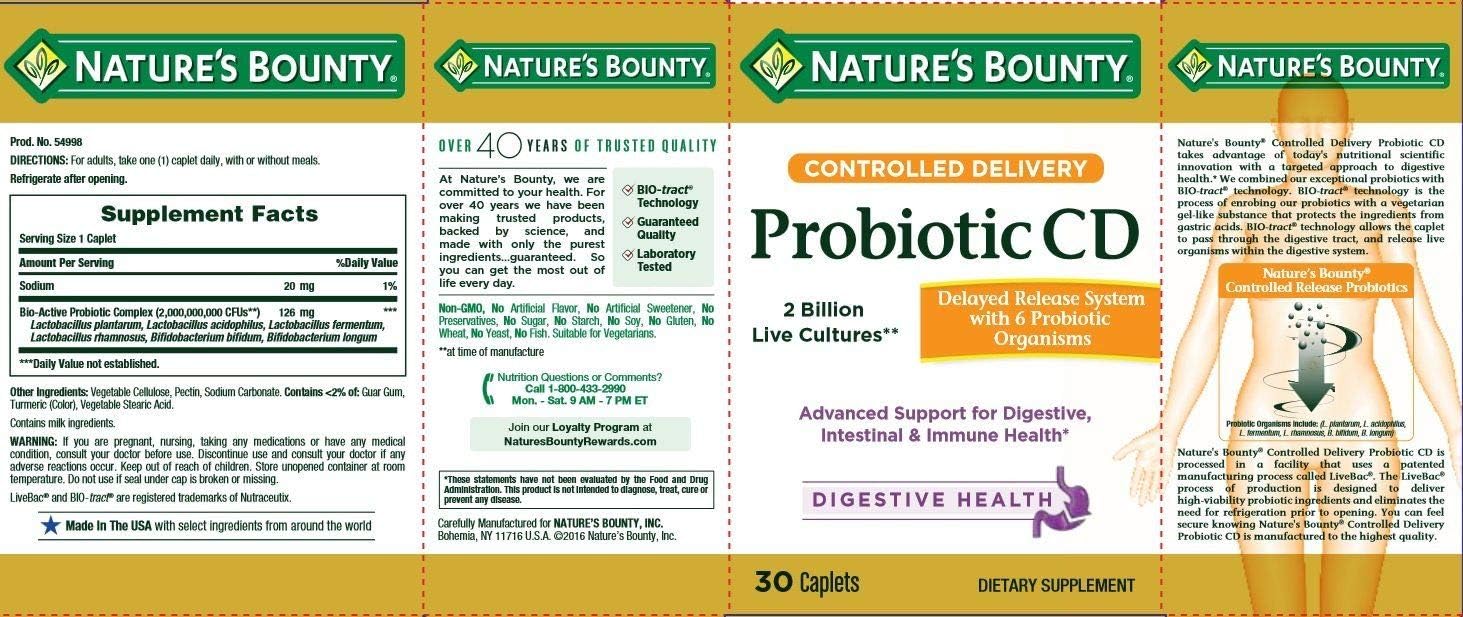 Nature’S Bounty Controlled Delivery Probiotic Cd Takes Advantage Of Today’S Nutritional Scientific Innovation With A Targeted Approach. Combined Exceptional Probiotics With Bio-Tract Technology. Bio-Tract Technology Is The Process Of Enrobing Our Probiotics With A Vegetarian Gel-Like Substance That Protects The Ingredients From Gastric Acids. Bio-Tract Technology Allows The Caplet To Pass Through The Digestive Tract, And Release Live Organisms Within The Digestive System