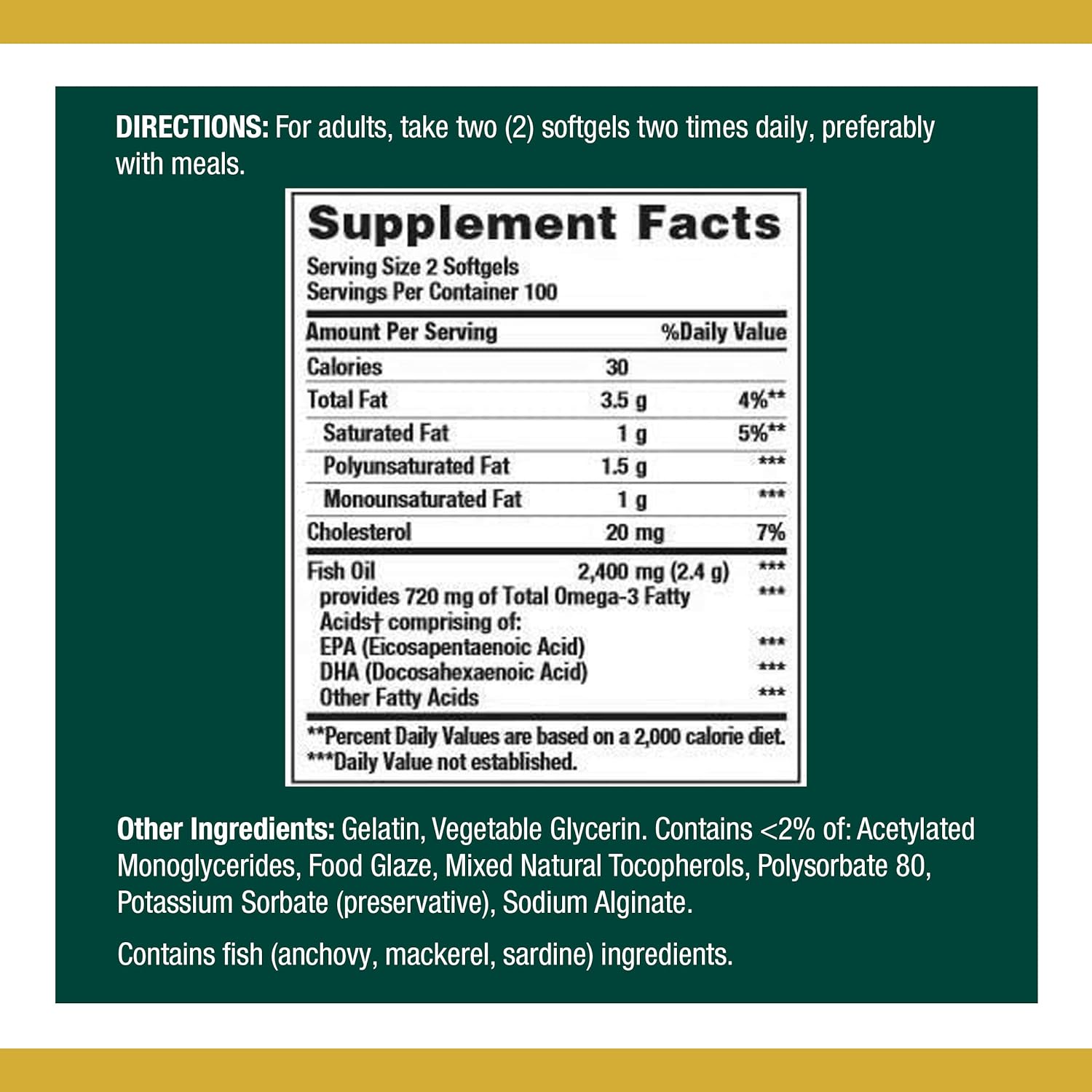 DESCRIPTION : Nature's Bounty Fish Oil, 1200mg, 360mg of Omega-3, 200 Coated Softgels