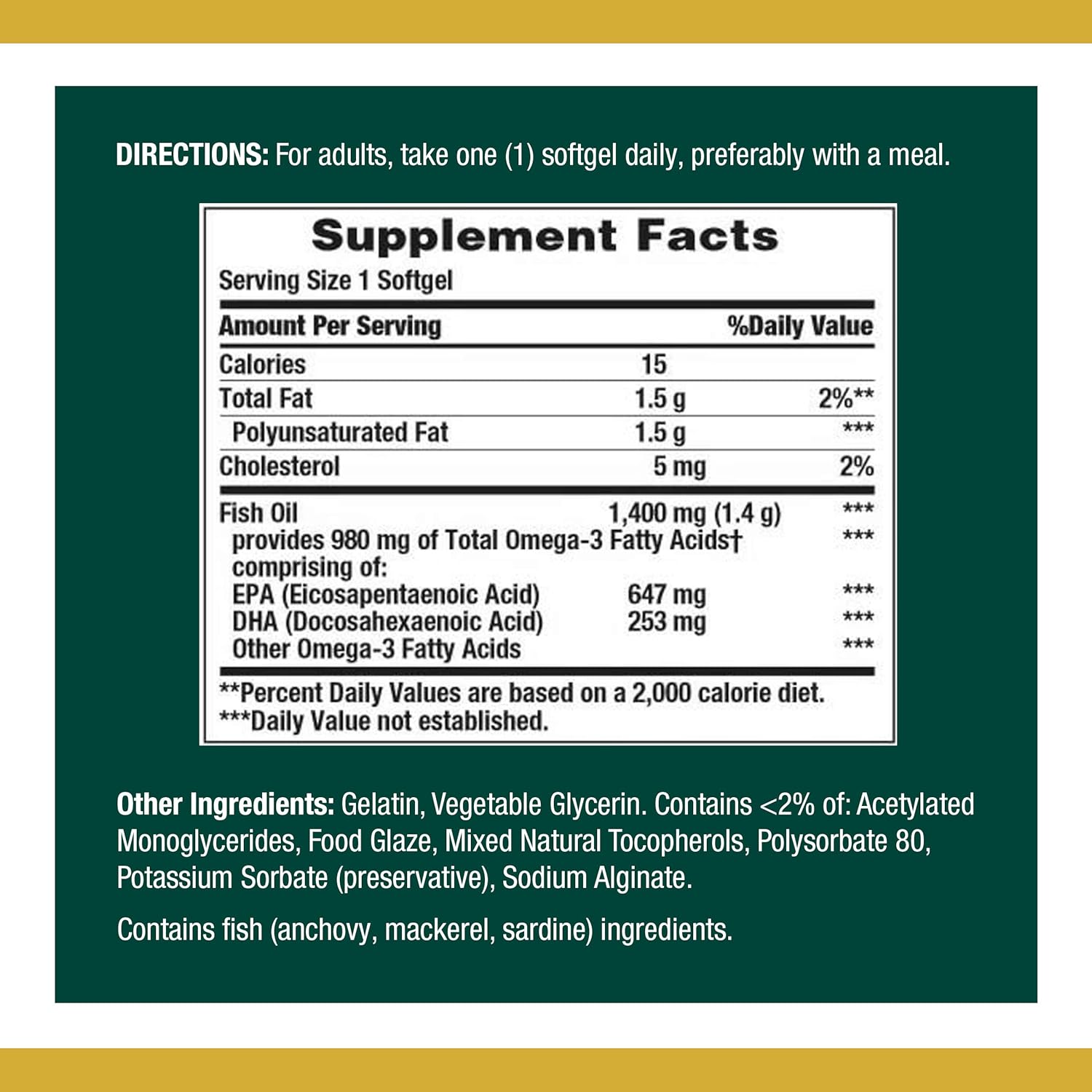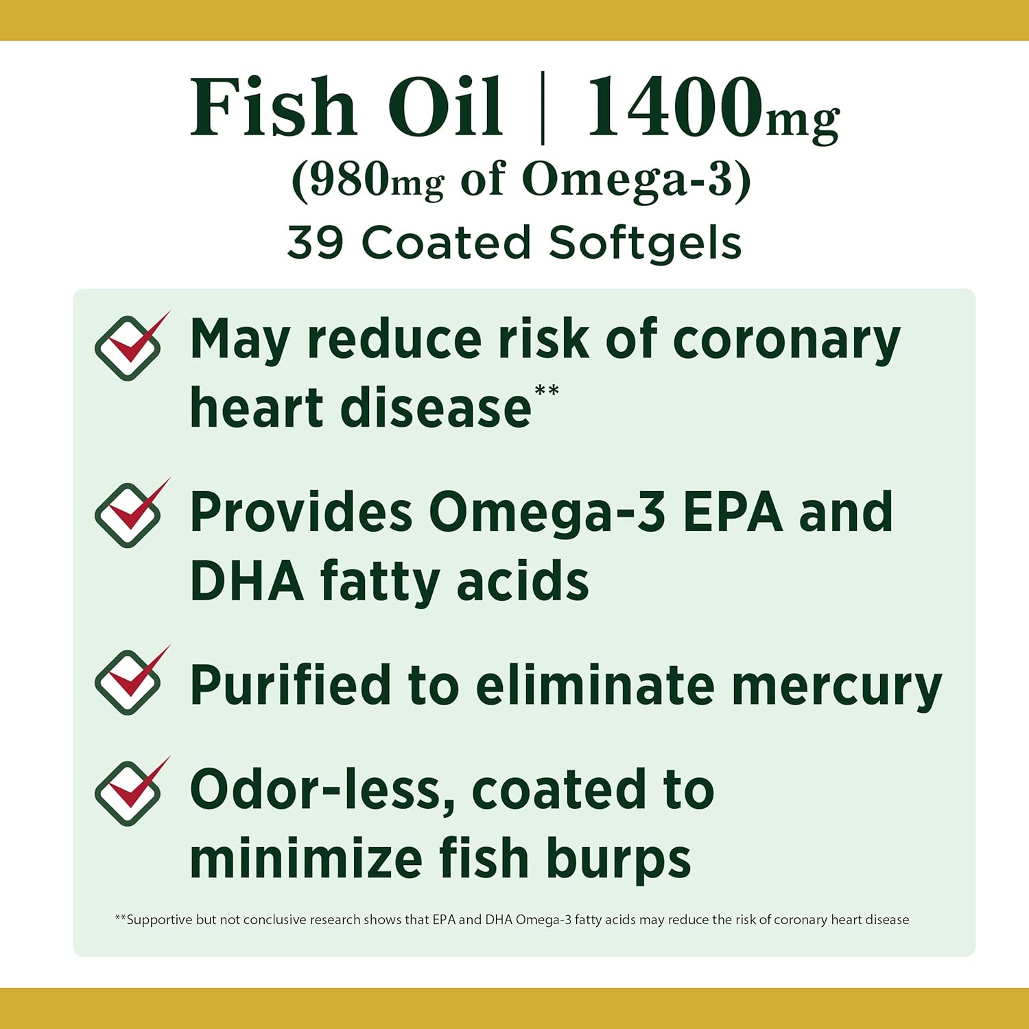Nature'S Bounty Fish Oil, Dietary Supplement, Omega 3, Supports Heart Health, 1400 Mg, 39 Coated Softgels