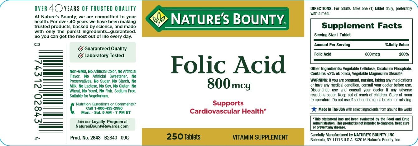 Nature'S Bounty Folic Acid Supplement, Supports Cardiovascular Health, 800Mcg, Tablet 250 Count(Pack Of 3)