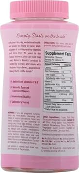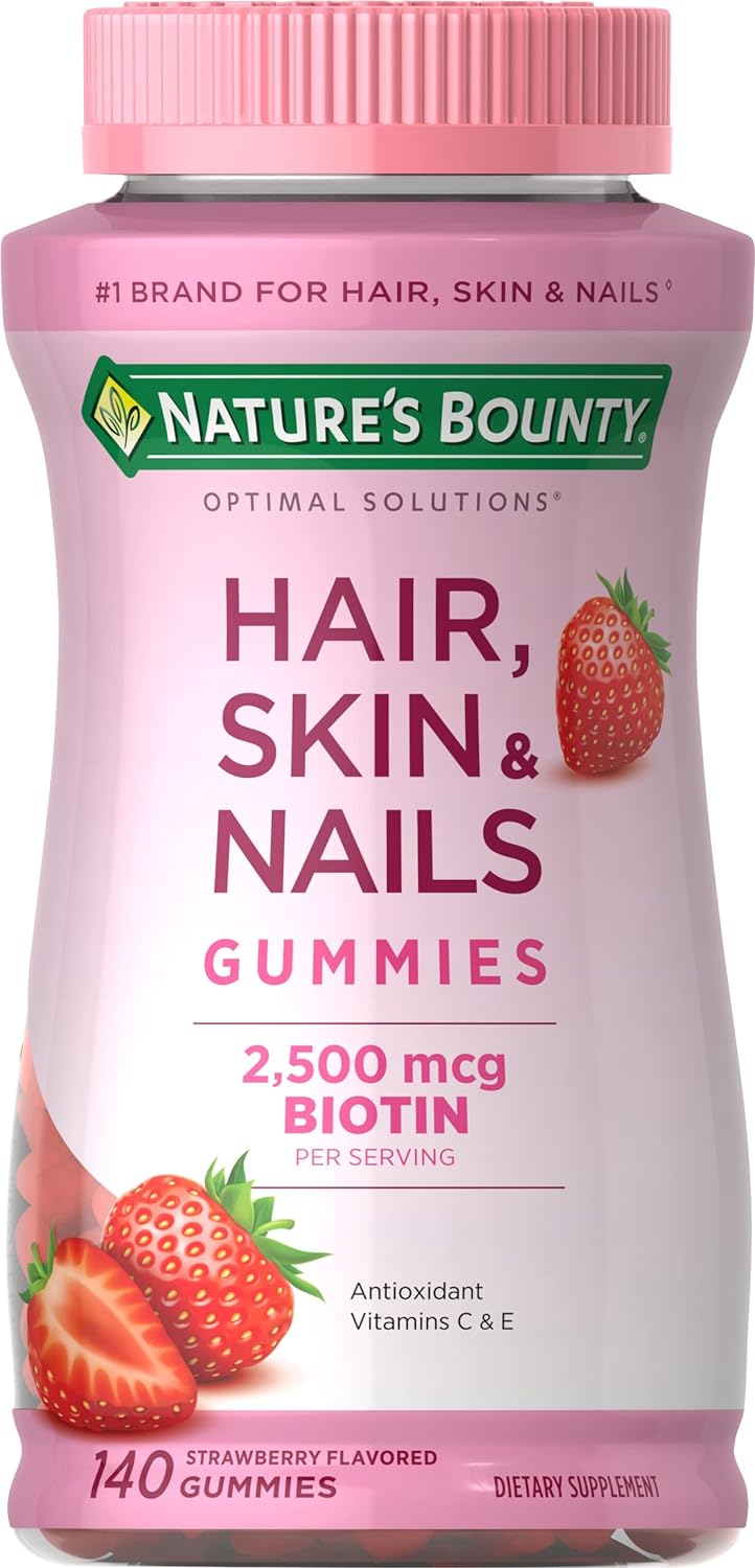 From The Number 1 Brand For Hair, Skin, And Nails,(2) Nature'S Bounty Hair, Skin & Nails Gummies Contains With Biotin And Vital Nutrients To Support Beautiful Hair, Glowing Skin, And Healthy Nails From The Inside Out.(1) Each Serving Of Our Delicious Strawberry-Flavored Biotin Gummies Contains Antioxidants Vitamin E And Vitamin C. Vitamin E Contributes To Skin Health; Vitamin C Is Involved In Collagen Production And Formation, Which Forms The Basis For Vibrant Skin; And Biotin Helps To Maintain Healthy Hair.(1) Every NatureāS Bounty Beauty Supplement Is Backed By A Combination Of Nature And Science, And Made With The Purest Ingredients, Guaranteed. Our Unique Formula Is Laboratory-Tested Plus Is Free Of Milk, Lactose, Soy, Gluten, Wheat, Or Fish. If YouāRe Hoping To Look And Feel Your Best, Nature'S Bounty Hair, Skin & Nails Vitamins For Women Are A Great Addition To Your Everyday Beauty Routine And A Delicious Way To Support Your Natural Beauty From Within.(1)