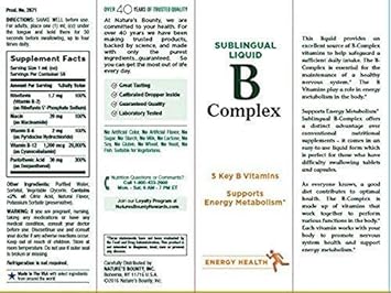 Product Description Nature's Bounty B Complex with B12 Sublingual Liquid Fast Acting Dietary. Nature's Bounty B Complex with B12 Sublingual Liquid Fast Acting Dietary Supplement. (892345) Brand Story By Nature's Bounty
