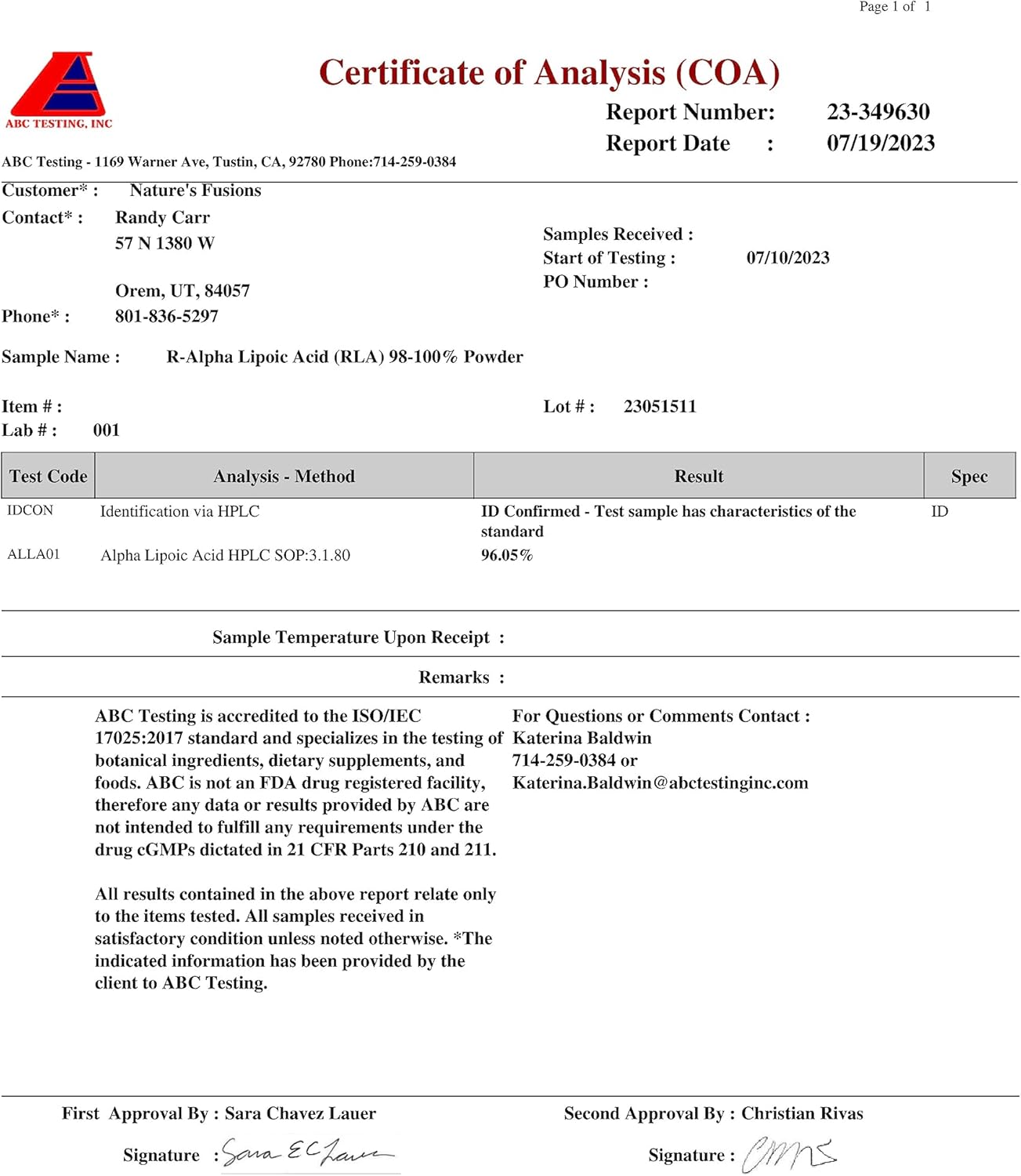 POWERFUL ANTIOXIDANT SUPPORT: R-Alpha Lipoic Acid is renowned for its potent antioxidant properties, defending against oxidative damage and promoting a healthy inflammatory response, supporting the overall health of your cells