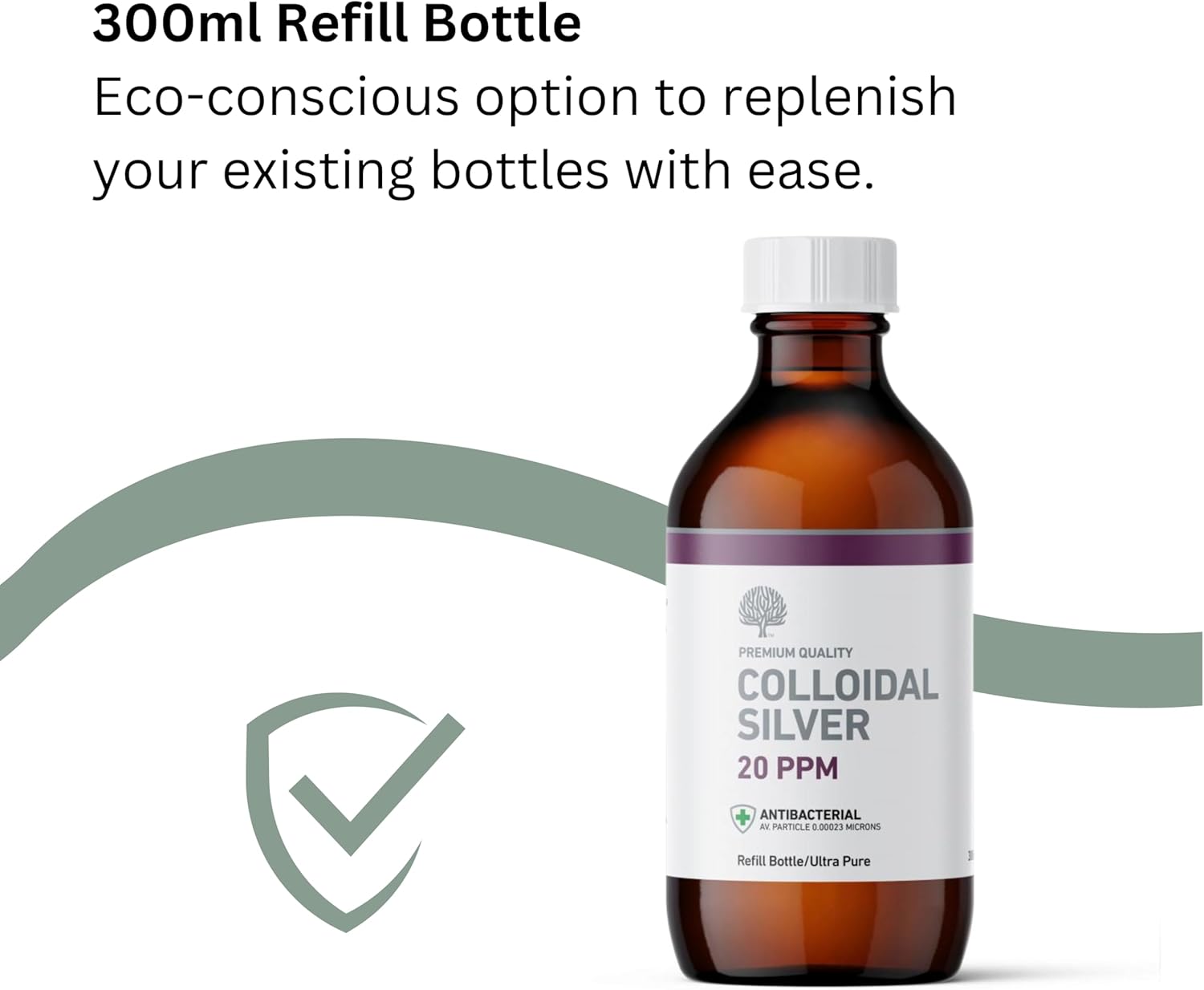 Nature'S Greatest Secret Premium Quality Antibacterial 20Ppm Colloidal Silver Bottle 300Ml