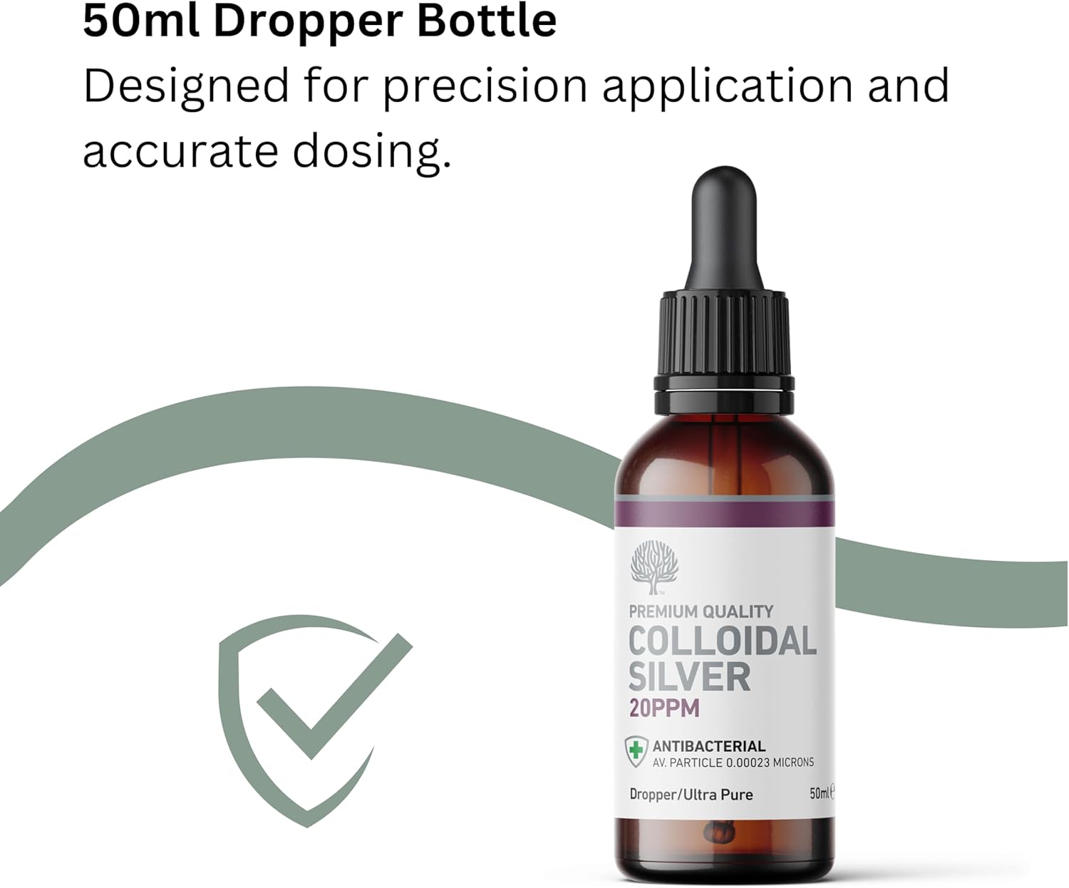 Nature'S Greatest Secret Premium Quality Antibacterial 20Ppm Colloidal Silver Dropper Bottle 50Ml