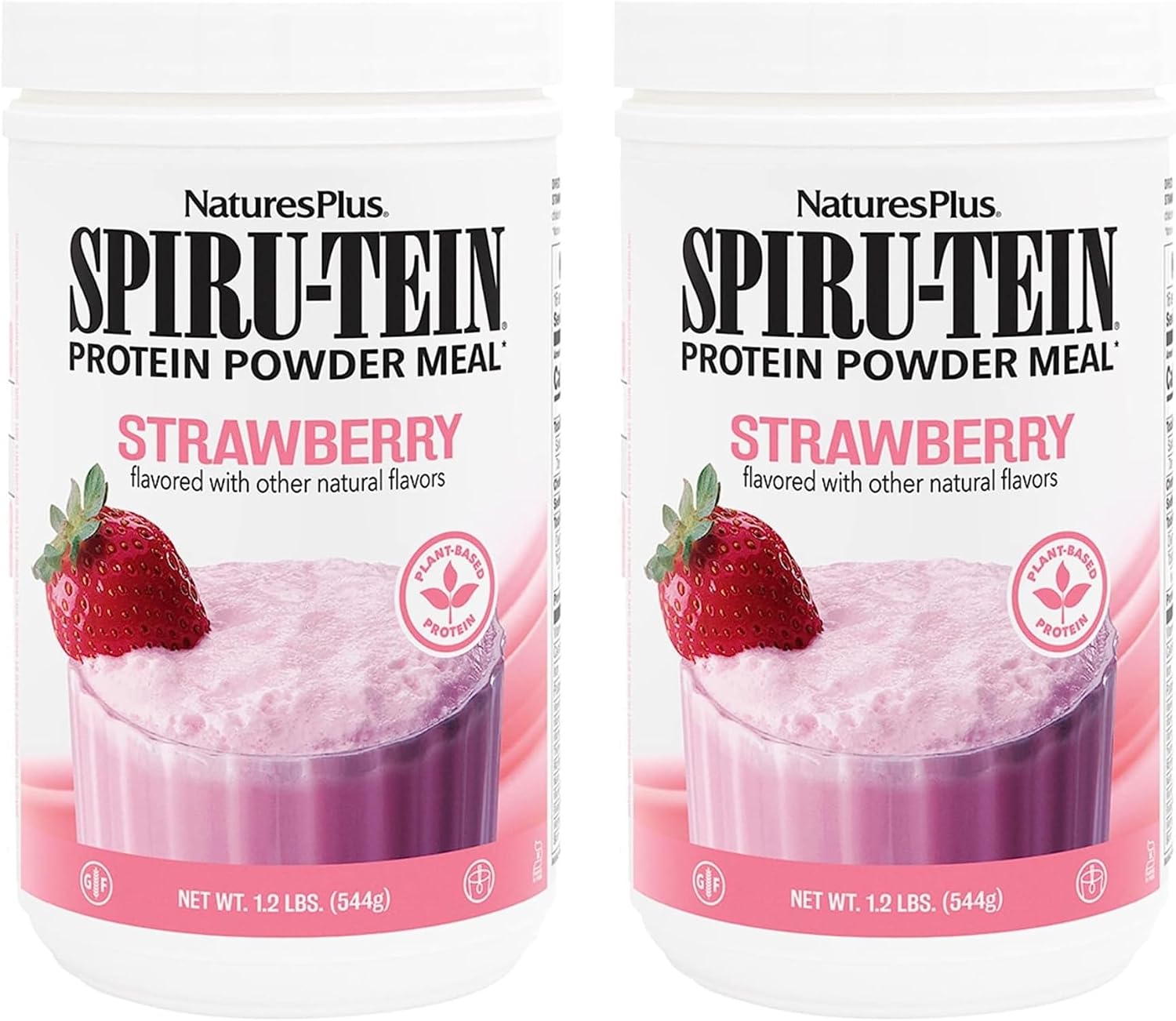 Natures Plus Spiru-Tein, Strawberry - 1.2 Lbs, Pack Of 2 - Plant-Based Protein Shake - Non-Gmo, Vegetarian, Gluten Free - 32 Total Servings