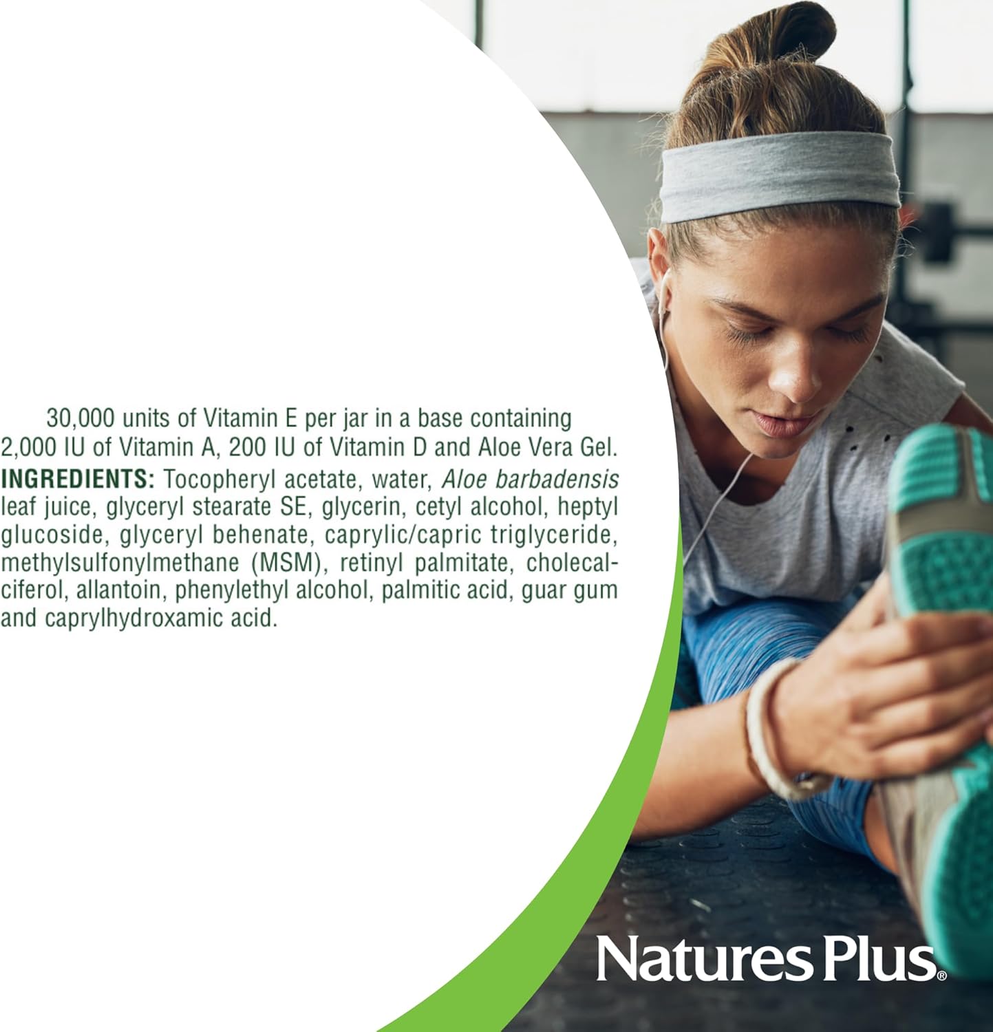 Natures Plus Vitamin E Cream - 30,000 Iu, 2.2 Oz - Helps Relieve Dry Skin, May Soothe Minor Skin Irritations- With Msm, Aloe Vera, Vitamins A & D - Vegan, Vegetarian