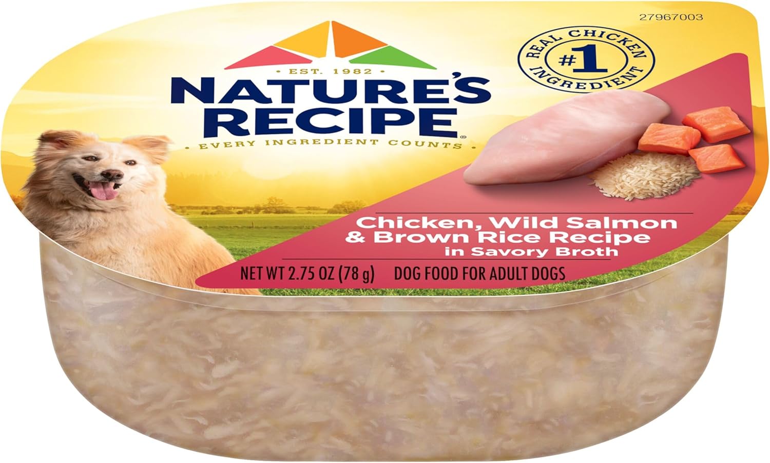 Nature'S Recipe Wet Dog Food, Chicken & Wild Salmon In Broth Recipe, 2.75 Ounce Cup (Pack Of 12)