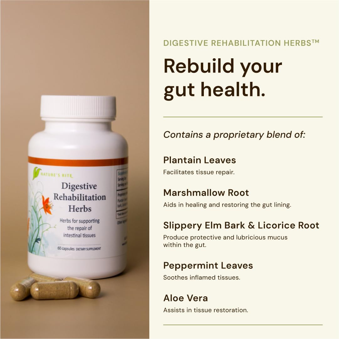 Nature'S Rite Digestive Enzymes, Gut Health Rehabilitation All Natural Herbs, Fast Acting 60 Capsules