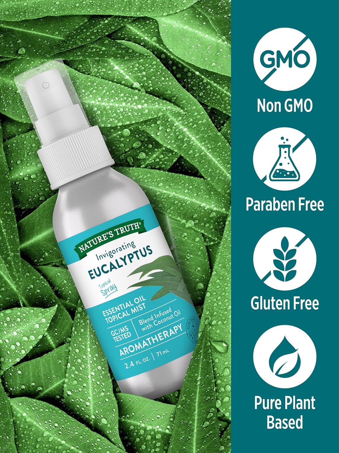 Nature'S Truth Eucalyptus Mist Spray 2.4 Fl Oz | 100% Pure Essential Oil For Aromatherapy | Gc/Ms Tested