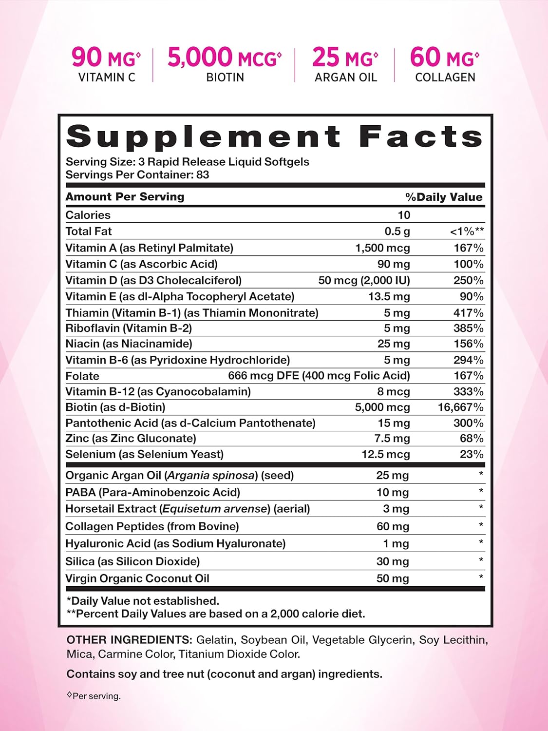 Superior Strength: Each Serving Contains 5,000 Mcg Of Biotin Plus Argan Oil, Collagen & Coconut Oil