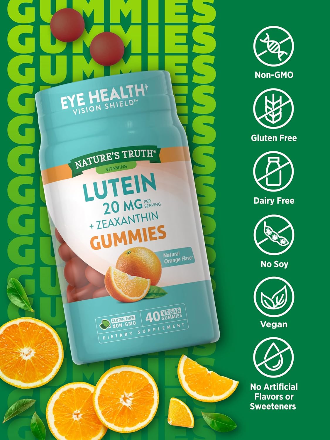Nature'S Truth Lutein & Zeaxanthin Gummies | 20Mg | Vegan, Non-Gmo & Gluten Free Supplement | 40 Count | Orange Flavor
