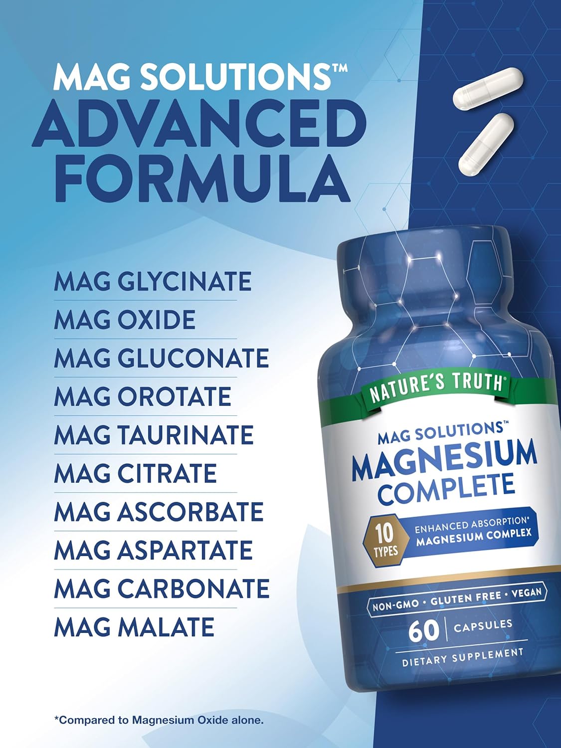 Nature'S Truth Magnesium Complex Capsules 10 Forms | 300Mg | 60 Count | Glycinate, Citrate, Plus More | Vegan, Non-Gmo & Gluten Free Supplement