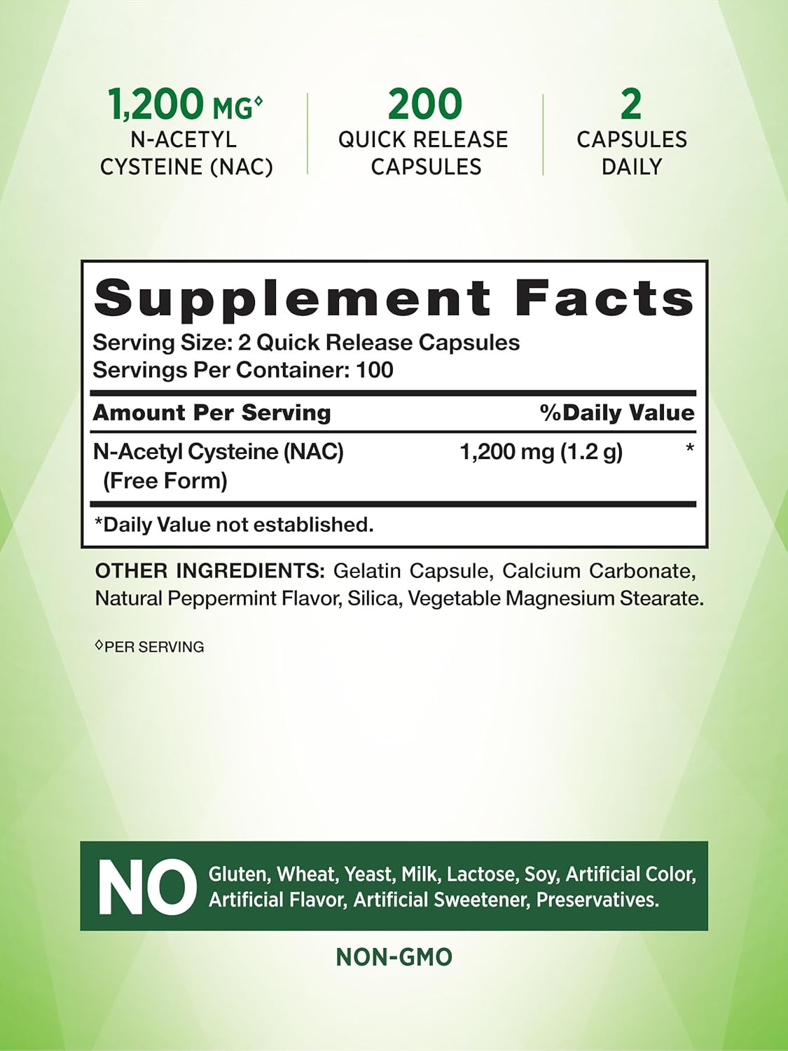 Nature'S Truth Nac N-Acetyl Cysteine | 1,200Mg | 200 Capsules | Free Form Amino Acid | Non-Gmo & Gluten Free Supplement