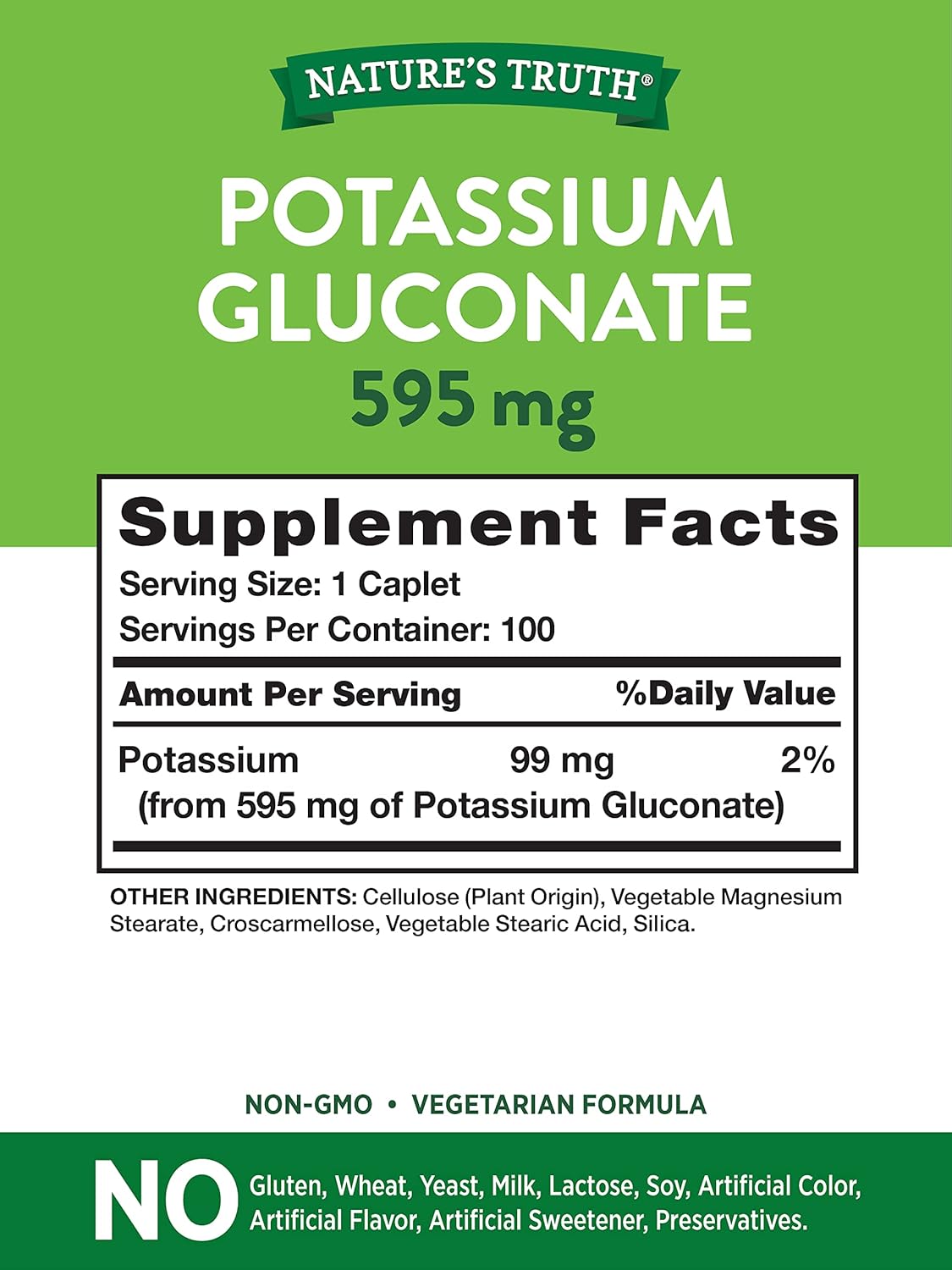 Nature'S Truth Potassium Gluconate 595Mg | 100 Capsules | Vegetarian, Non-Gmo, Gluten Free Supplement