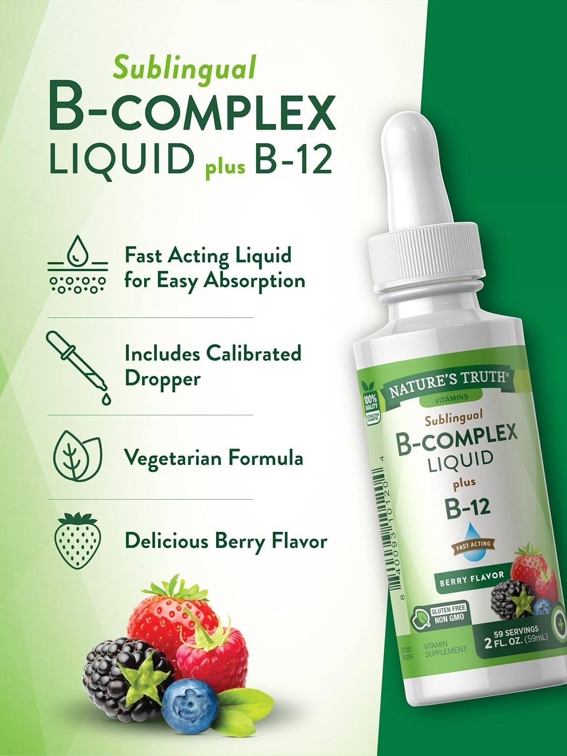 Nature'S Truth Sublingual B Complex | With B12 | 2 Fluid Ounces | Berry Flavor | Vegetarian, Non-Gmo & Gluten Free Supplement