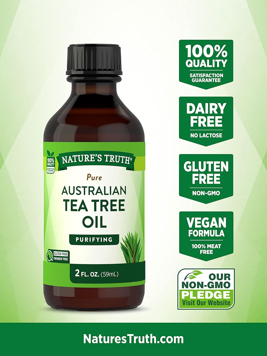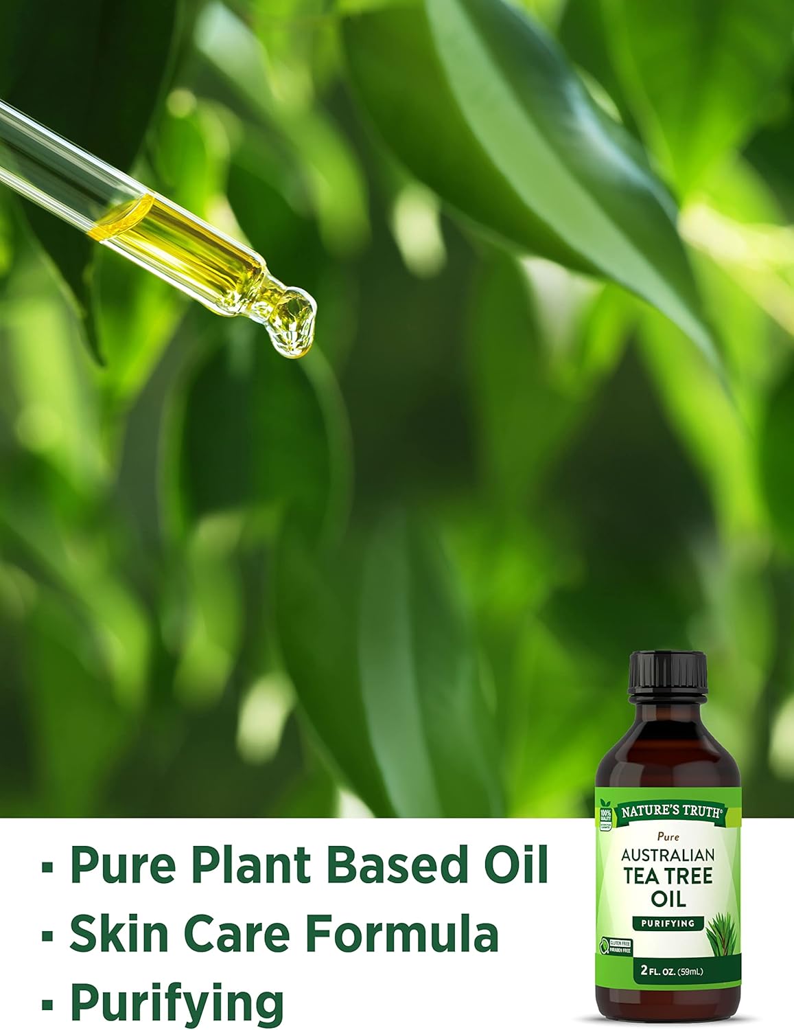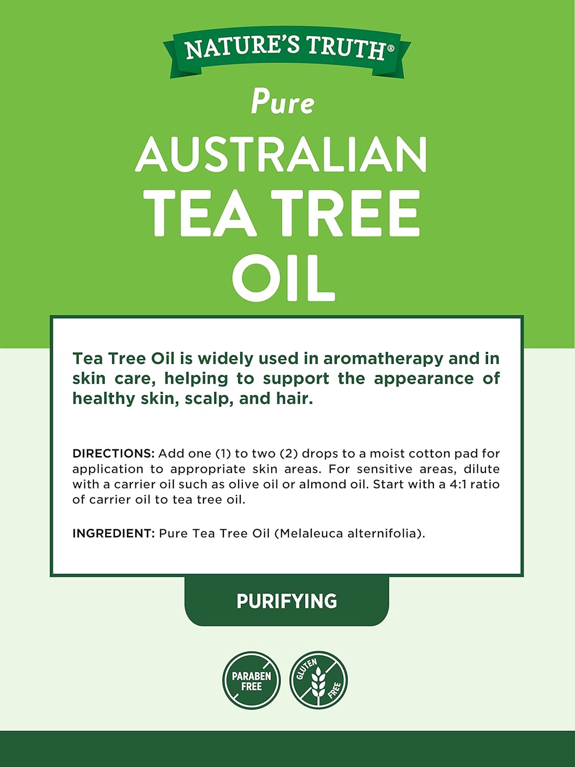 Nature'S Truth Tea Tree Oil 100 Pure Australian Tea Tree Oil For Hair Face Body And Aromatherapy Nongmo Gluten Free, 2 Fl Oz