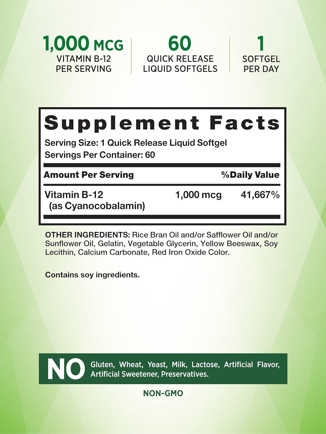 What Is Vitamin B-12 Vitamin B-12 Can Be Found In A Variety Of Foods Like Fish, Meat, And Eggs; But Many People May Find It Challenging To Receive The Necessary Daily Amount Through Diet Alone. A High-Quality Supplement Is A Reliable Way To Receive The Recommended Daily Value Of This Essential Vitamin. Nature’S Truth Vitamin B-12 Quick Release Liquid Softgels Our Vitamin B-12 Supplement Delivers 1,000 Mcg Of Vitamin B-12 As Cyanocobalamin Per Serving. These Quick Release Liquid Softgels Are A High-Potency Source Of Absorbable Vitamin B-12. Adults Can Take One Softgel Daily To Reap Its Full Benefits. Nature’S Truth: Where Wellness Begins Our Mission At Nature’S Truth Is To Meet Your Wellness Needs With Products That Go Above And Beyond. Nature’S Truth Provides Supplements In Various Delivery Forms, Such As Capsules, Softgels, Chewables, Tablets, Powders, Liquids, And Gummies To Suit Every Preference. Our Vitamin B-12 Is Non-Gmo And Free Of Gluten, Wheat, Yeast, Milk, Lactose, Artificial Flavor, Artificial Sweetener, And Preservatives