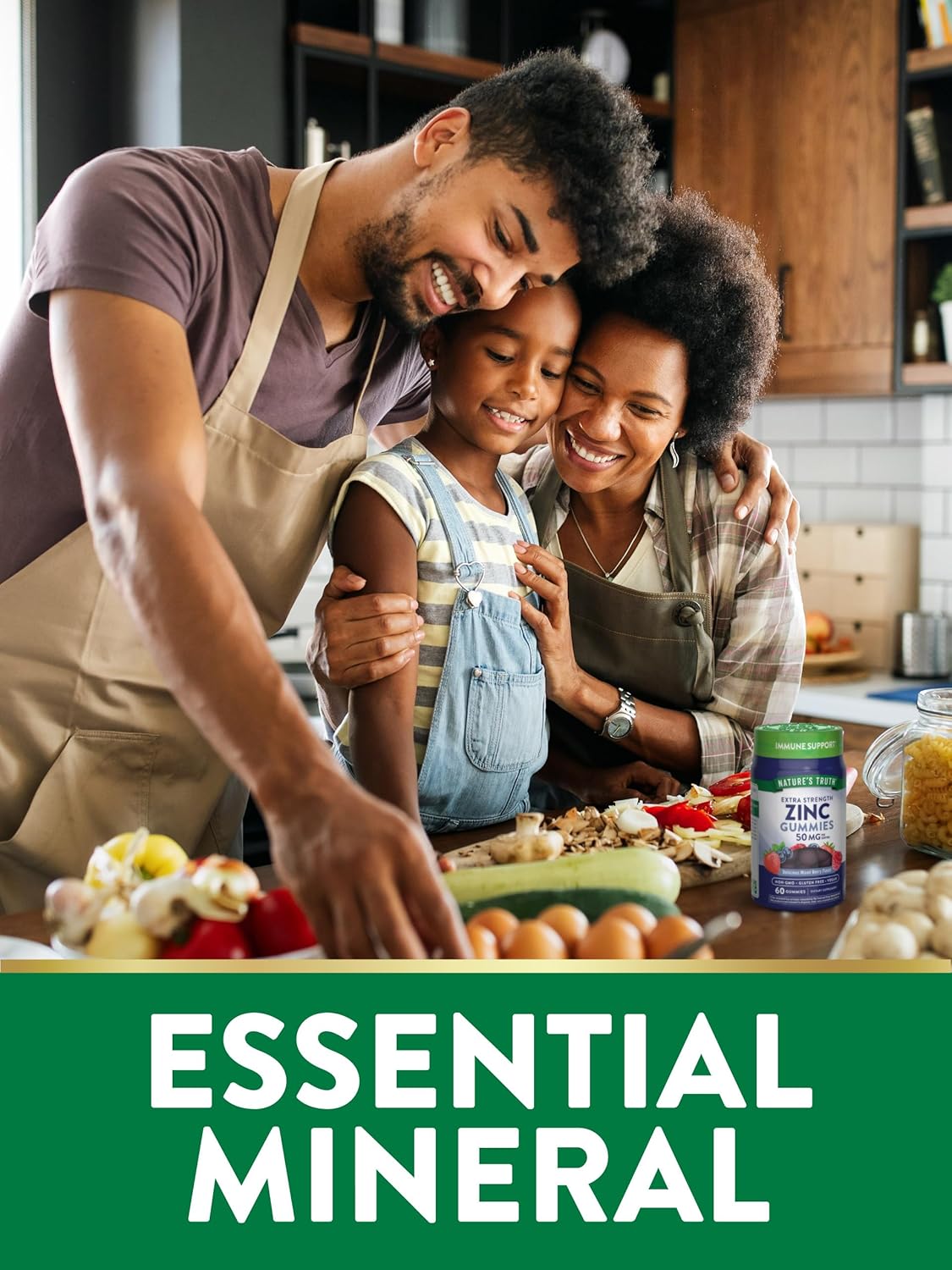 What Is Zinc Zinc Is An Essential Mineral That The Body Needs But Cannot Make On Its Own. Known For Its Wide Range Of Benefits, Zinc Can Be Obtained From Certain Foods Such As Meat, Nuts, Seeds, And Dairy ā But It Can Be Difficult To Receive The Recommended Daily Amount Through Diet Alone. Choosing To Take A Zinc Supplement Is A Wonderful Way To Fulfill Your Daily Requirement. NatureāS Truth Zinc Gummies Each Serving Of Our Zinc Gummies Delivers 50 Mg Of Zinc (As Zinc Citrate), Which Meets The Daily Recommended Value Of This Important Mineral. Our Extra Strength Gummy Formula Is Vegan Friendly And A Delicious Mixed Berry Flavor With No Metallic Aftertaste. Gummies Are A Wonderful Alternative For Those Who Dislike Or Have Trouble Swallowing Pills And Can Easily Be Integrated Into Your Daily Routine. NatureāS Truth: Where Wellness Begins Our Mission At NatureāS Truth Is To Meet Your Wellness Needs With Products That Go Above And Beyond. NatureāS Truth Provides Supplements In Various Delivery Forms, Such As Capsules, Softgels, Chewables, Tablets, Powders, Liquids, And Gummies To Suit Every Preference. Our Zinc Is Vegan, Non-Gmo And Free Of Gluten, Wheat, Yeast, Milk, Lactose, Soy, And Artificial Sweetener