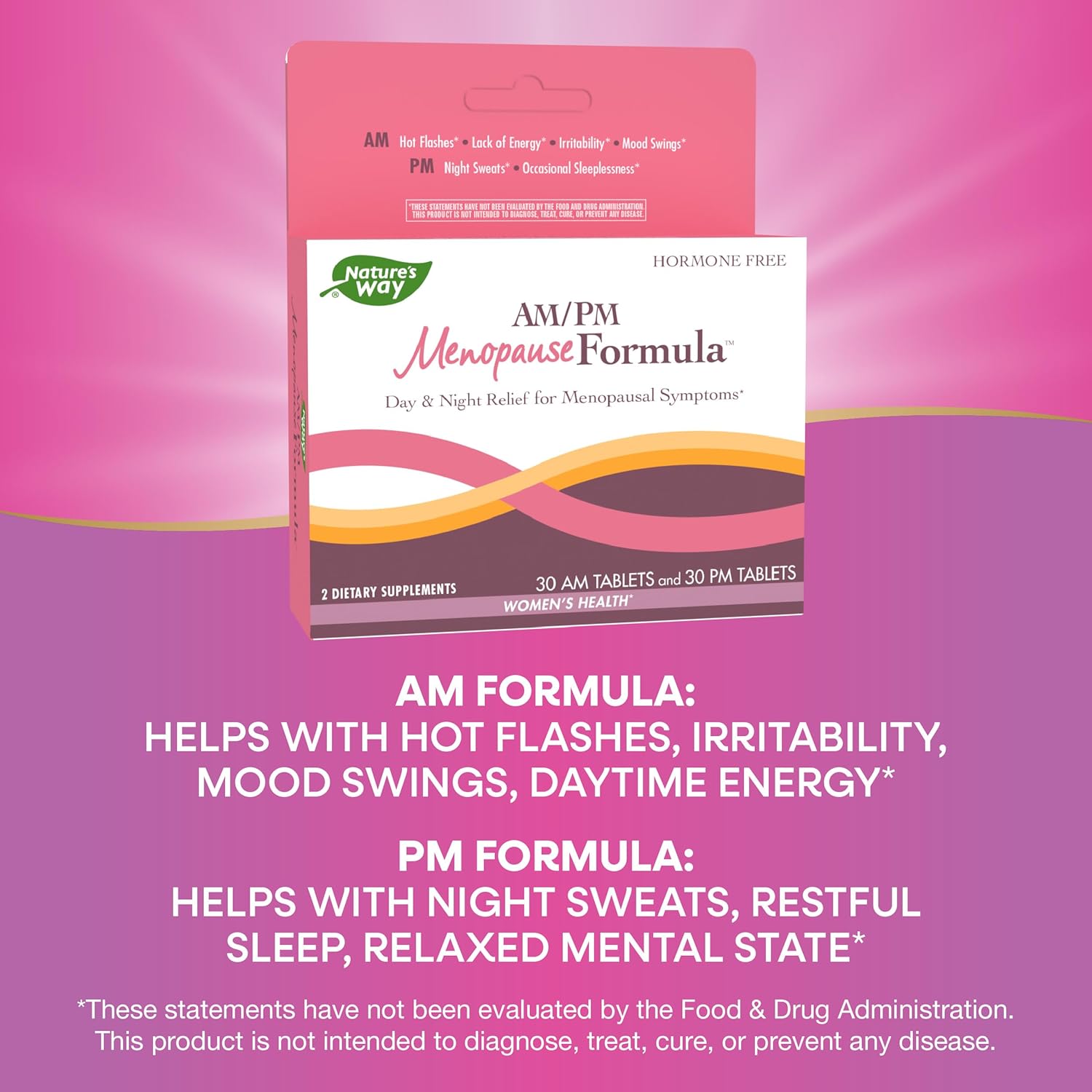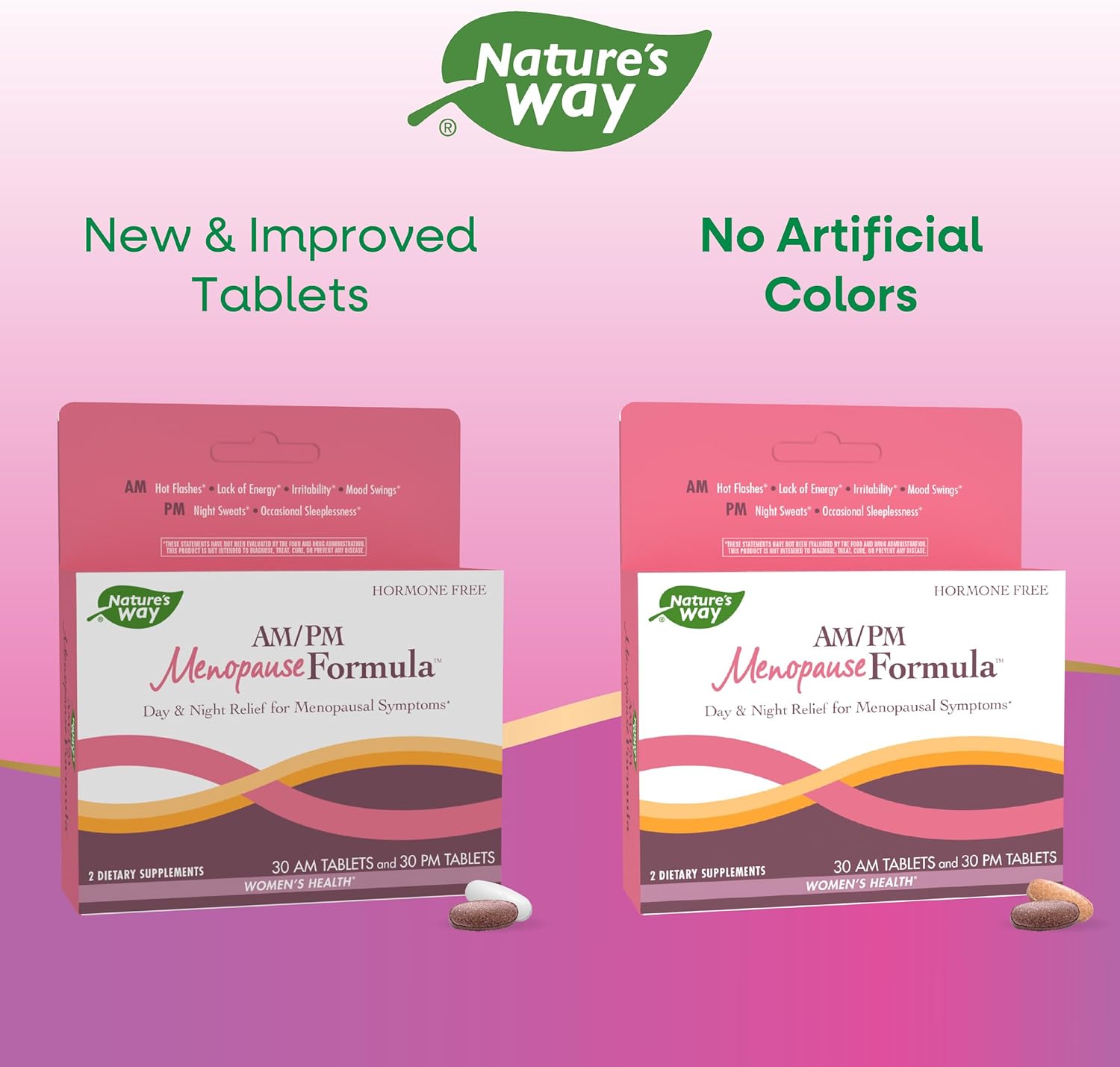 Nature'S Way Am/ Pm Menopause And Hot Flash Relief*, Hormone-Free Formulas Including Black Cohosh, L-Theanine And Valerian, 60 Tablets