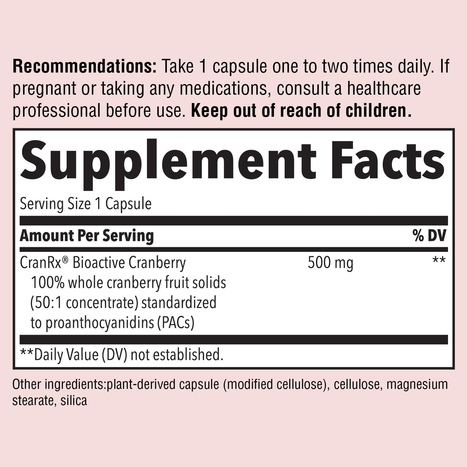 Daily cranberry supplement with:Standardized PACsWhole Fruit
