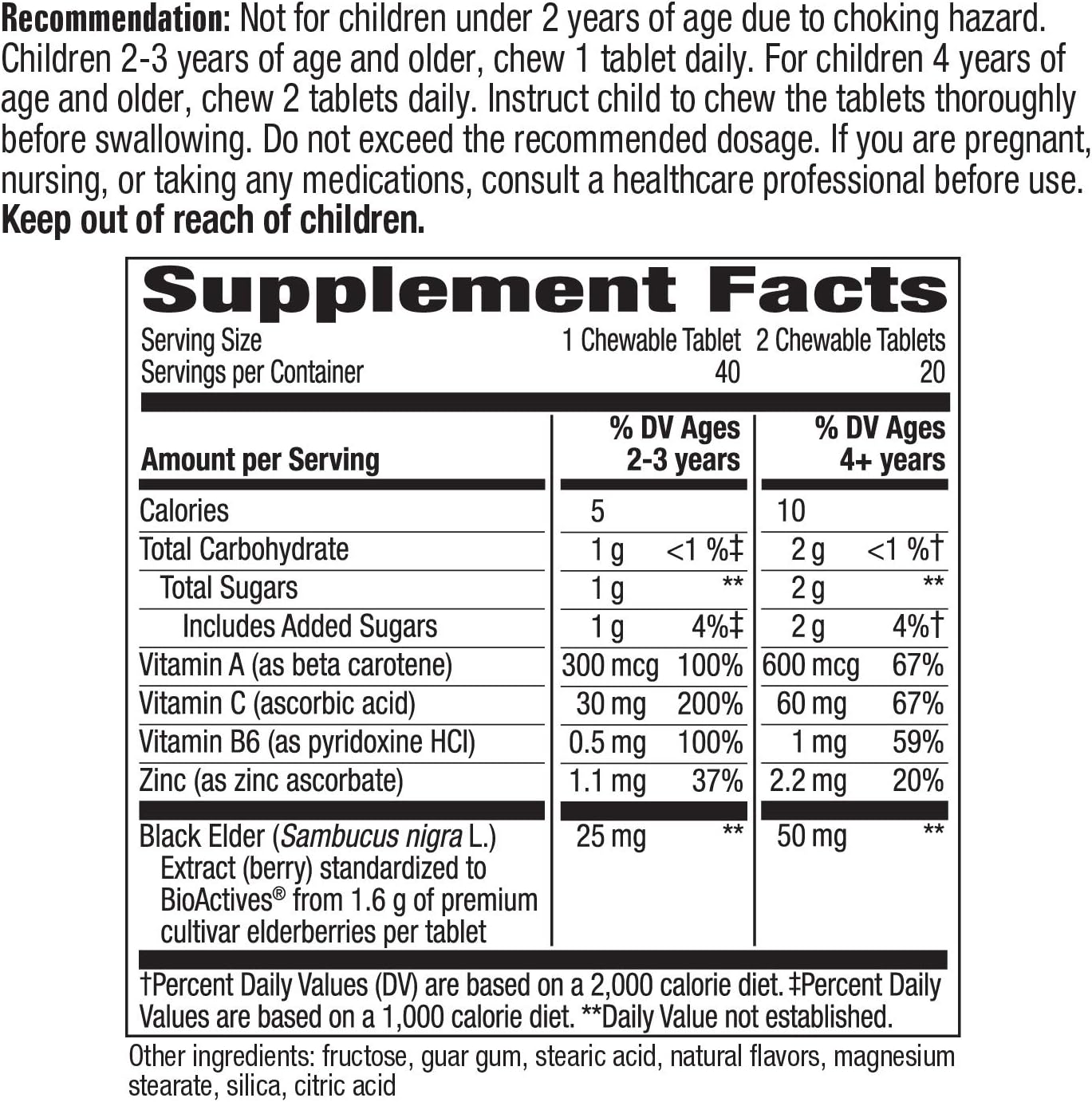Nature'S Way Sambucus Elderberry For Kids With Vitamin C And Zinc, Immune Support*, 40 Chewable Tablets