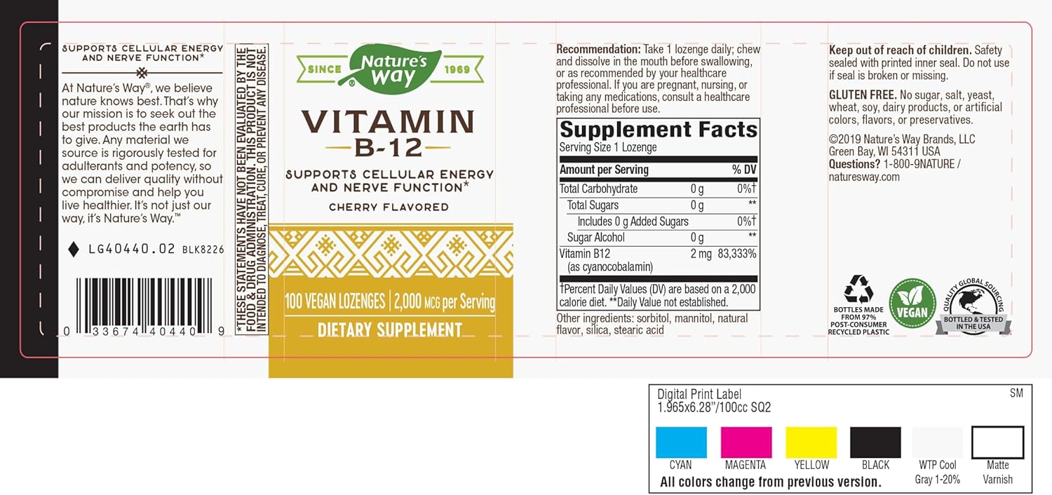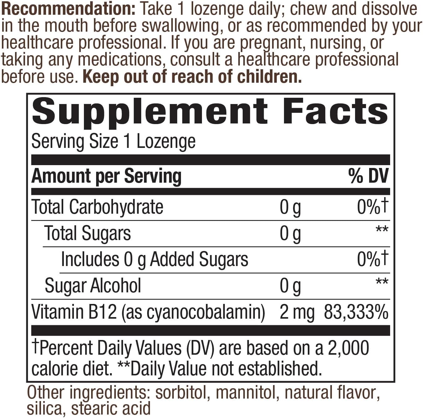 Nature'S Way Vitamin B12 Lozenge, 2,000 Mcg Per Serving, 100 Count