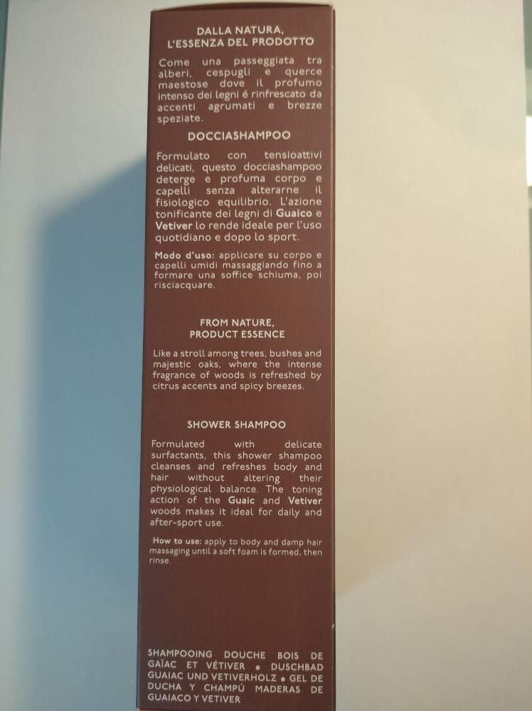 Nature's Woods docciashampoo docciashampoo Formulated with gentle surfactants, cleanses and fragrance Body and Hair Without Altering The Physiological balance. The invigorating action of guaico woods and vetiver, makes it ideal for everyday use and after sport. Extract of guaiac wood components; extract of vetiver woods; Hyaluronic Acid; extract of Eperua Falcata; Aromatic Oils. Bottle 200 ml format. Cod. 60190701,Dedicated to the world, this masculine fragrance based on wood symbolises the line Man Cosmetics for the care of the whole body with extracts of vetiver and guaiac wood. Man Scented Body Lotion and shaving products to give your skin tone and energy,Formulated with gentle surfactants, this shower shampoo cleanses and refreshes body and hair without altering their physiological balance,The invigorating action of guaic and vetiver woods makes it ideal for the daily use and after-sport