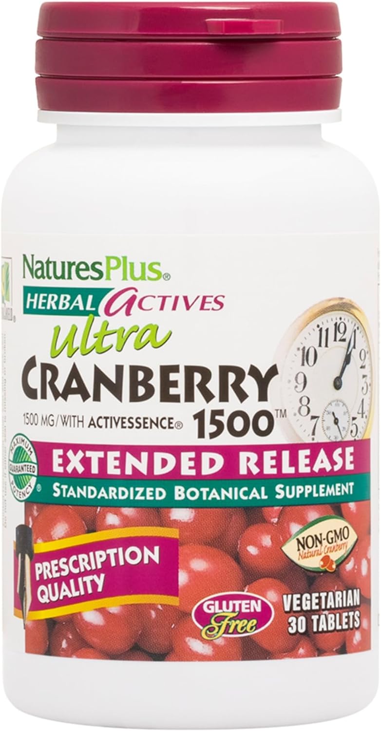 Naturesplus Herbal Actives Ultra Cranberry, Extended Release - 1500 Mg, 30 Vegetarian Tablets - Prescription Quality Supplement, Promotes Urinary Tract Health - Gluten-Free - 30 Servings