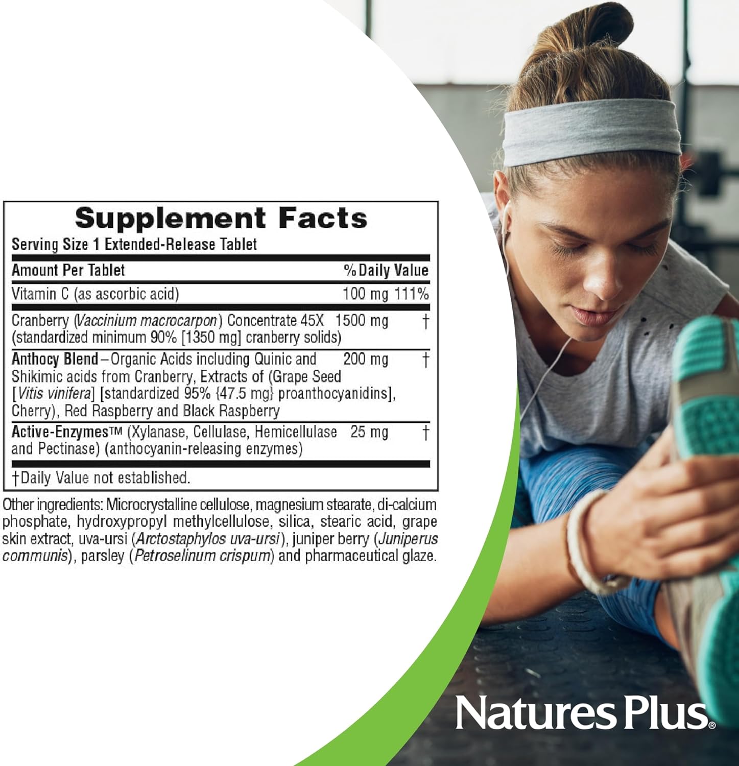 1500 mg CRANBERRY, 100 mg VITAMIN C - We created an extremely potent cranberry supplement with Vitamin C. One tablet supplies 1350 mg of pure cranberry solids and it's designed for extended release to maximize bioavailability