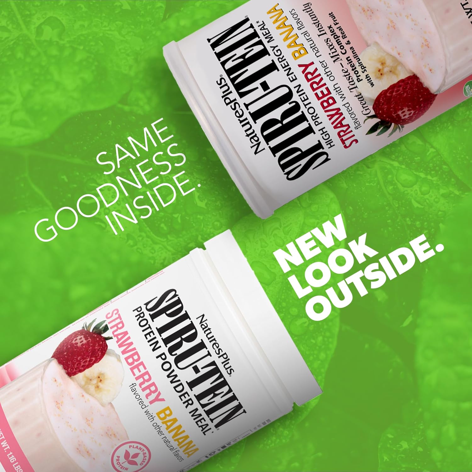 Naturesplus Spiru-Tein Shake - Strawberry Banana - 1.12 Lbs, Spirulina Protein Powder - Plant Based Meal Replacement, Vitamins & Minerals For Energy - Vegetarian, Gluten-Free - 15 Servings