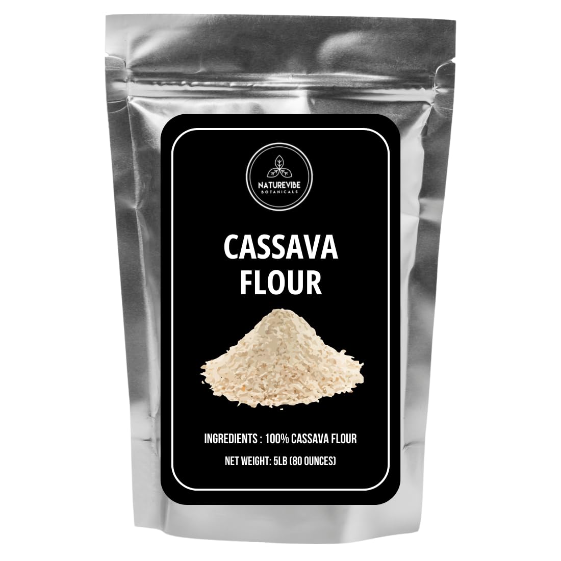 Naturevibe Botanicals Cassava Flour, 5Lb | Used For Cooking | Slightly Nutty Earthy Taste (80 Ounces) [Packaging May Vary]