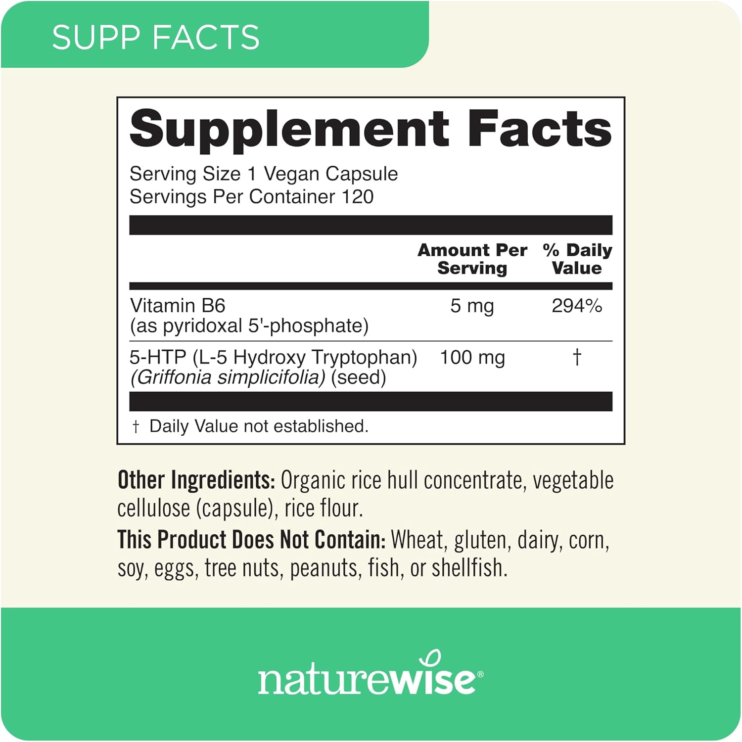 Naturewise 5 Htp 100Mg, 5 Htp Supplement W/Vitamin B6, From Griffonia Seeds - Mood Support Supplement, Natural Sleep Aids For Adults - Delayed Release Capsule, Vegan - 120 Count[2-4 Month Supply]
