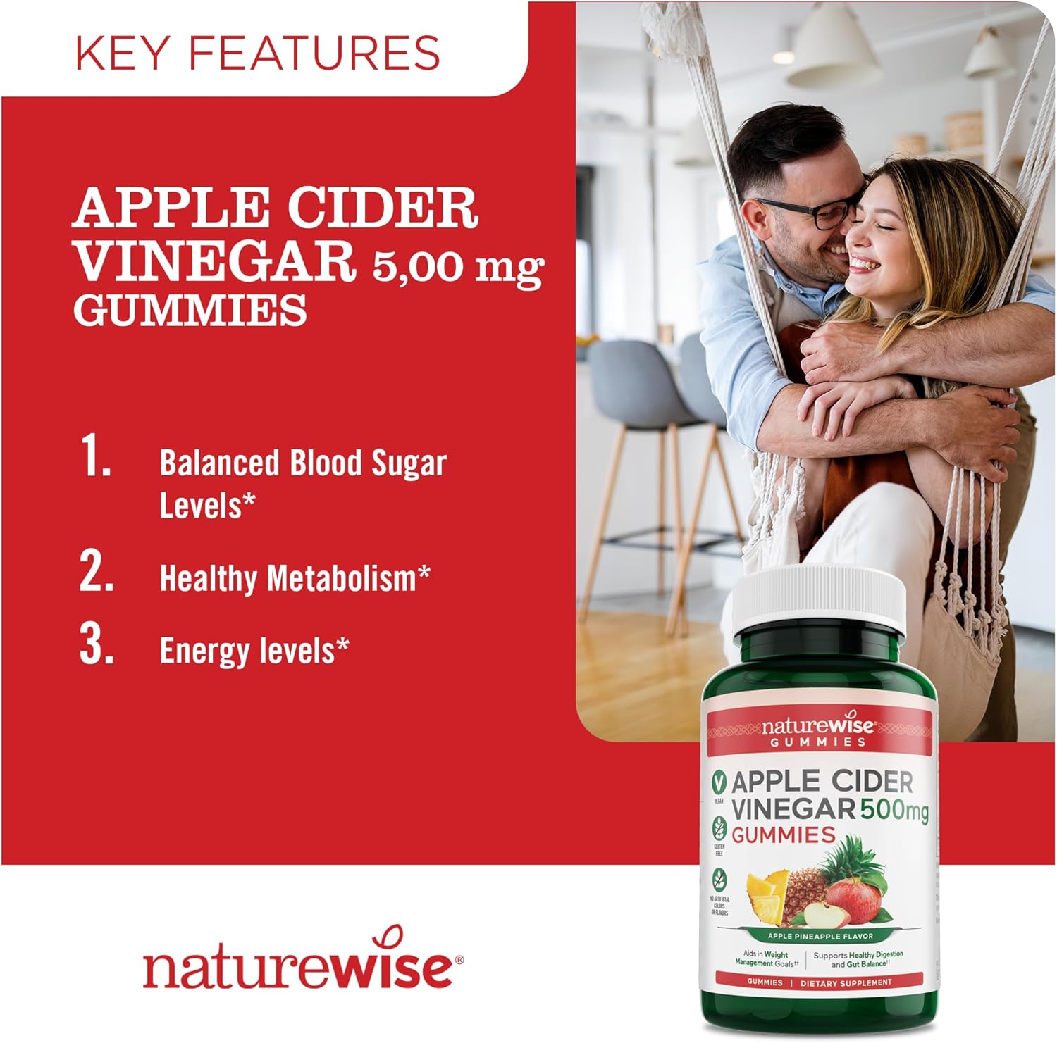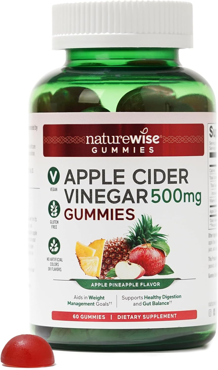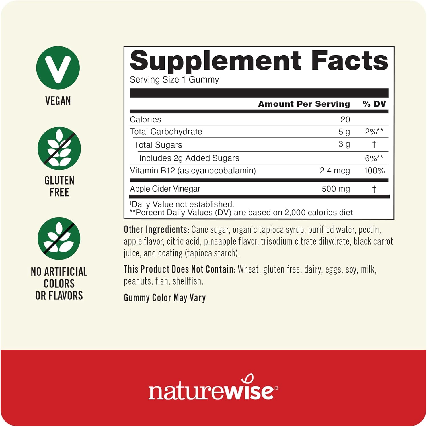 Naturewise Apple Cider Vinegar Gummies - 500Mg Acv Gummies With Vitamin B12 - Apple-Pineapple Flavor - Support For Energy & Gut Health - Vegan, Gluten-Free, Non-Gmo - 60 Gummies[2-Month Supply]