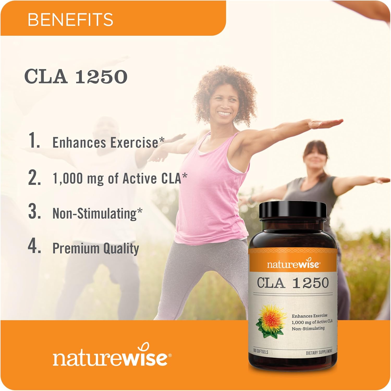 Conjugated Linoleic Acid (Cla) Is A Fatty Acid That You Can Only Obtain Through Diet. Because Cla Comes From Meat And Dairy, It Can Be Hard To Supply Your Body With Enough Cla To Support Your Active Lifestyle. That'S Why It'S Helpful To Incorporate Cla Supplements Into Your Routine. Naturewise Cla 1250 Is Made From Premium Quality Safflower Oil With An 80% Concentration Of Active Cla. Naturewise Cla 1250 Is A Safe Cla Supplement For Women And Men Alike. Every 1250 Mg Softgel Contains A Potent Dose Of 1000 Mg Cla To Help You Reach Your Fitness Goals And Fuel Your Workouts.* Cla May Support Weight Management And Body Composition When Taken Along With A Healthy Diet.* Made With Premium Quality, Non-Gmo Safflower Oil, Naturewise Cla 1250 Provides Clean, Non-Stimulating And Non-Addictive Cla. Implement Naturewise Cla 1250 Into Your Daily Routine For Energy, Weight Management, And Body Composition Maintenance.* These Softgels Are Made With Halal-Gelatin And Clean Cla Sourced From Safflower Oil