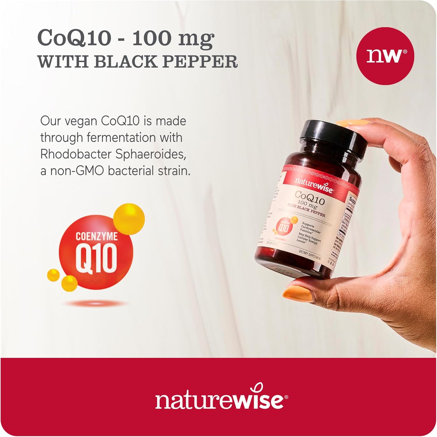 Naturewise Coq10 100Mg Softgels, High Absorption Coenzyme 10 With Bioperine Black Pepper - Antioxidant For Heart Health + Cellular Energy - Vegan, Non-Gmo, Gluten-Free - 90 Count[3-Month Supply]