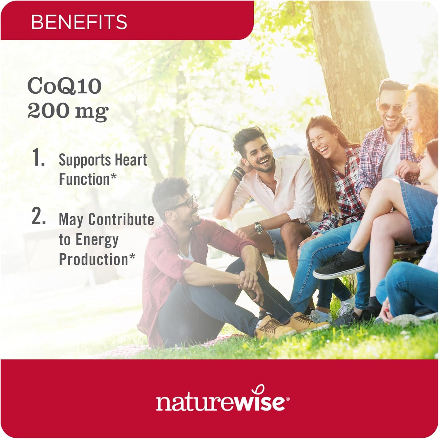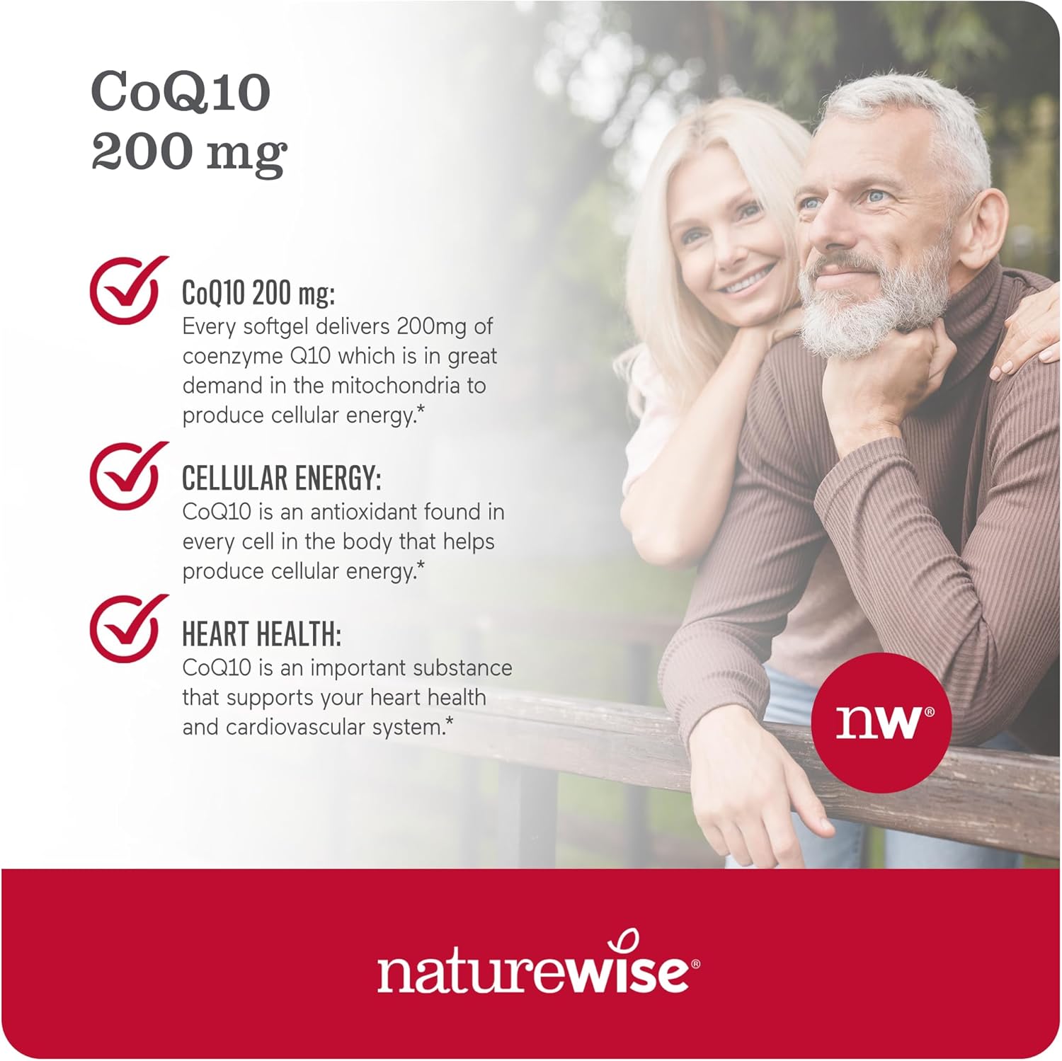 Naturewise Coq10 200Mg Softgels, High Potency Ubiquinone - Coenzyme Q10 Supplement - Antioxidant For Heart Health + Energy - Vegan, Non-Gmo, Gluten-Free - 30 Softgels[1-Month Supply]