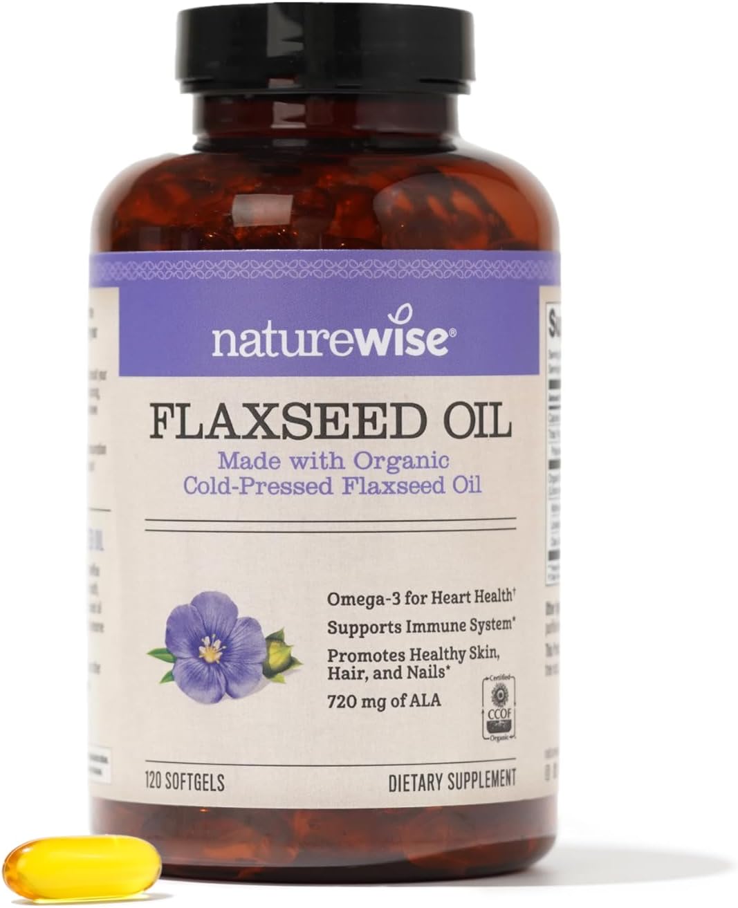 Naturewise Flaxseed Oil 1200 Mg, Fish Free Omega 3 Supplement With 720Mg Ala, Omega 3 6 9, Heart Health Support - Made With Organic, Cold Pressed Oil, Non-Gmo - 120 Softgels[4-Month Supply]