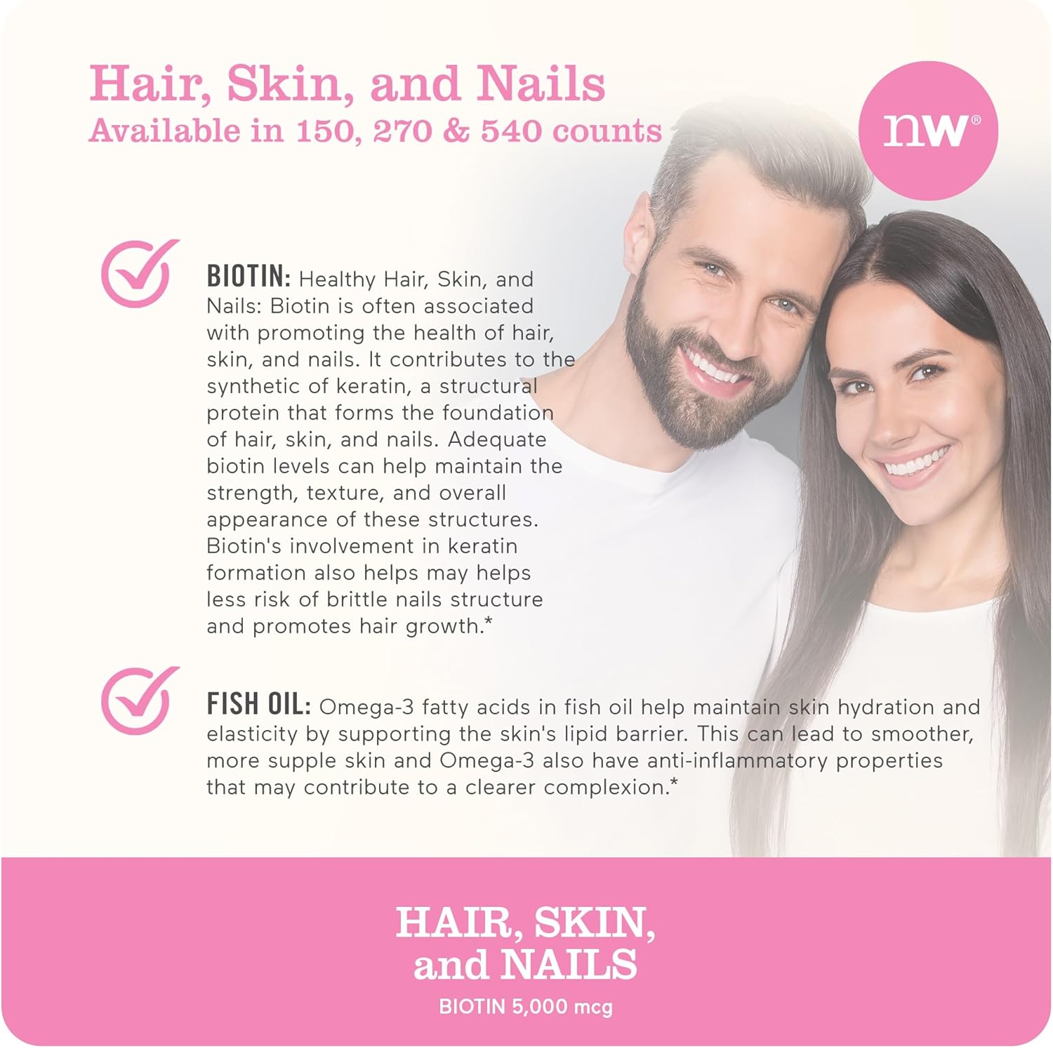 Naturewise Hair Skin And Nails Vitamin, Biotin 5000Mcg W/Hyaluronic Acid, Collagen, Multivitamin For Women W/Vitamin C, B Complex, D3, A, E, Iron - Non-Gmo, Gluten Free - 150 Softgels[50-Day Supply]