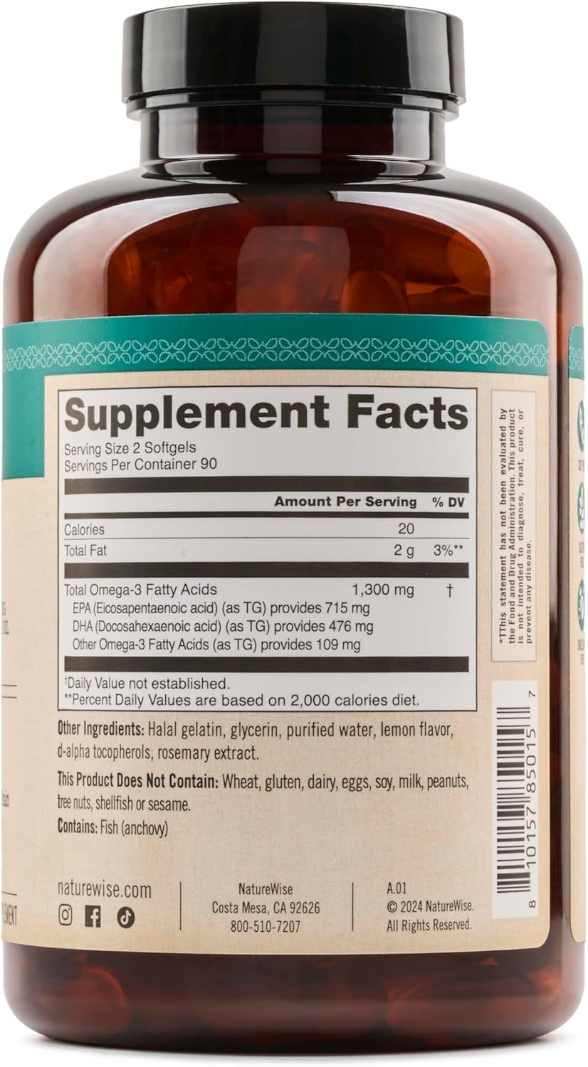 Wild Ocean-Caught Fish: Naturewise Omega-3 1300Mg Comes From Wild Ocean-Caught Anchovies, Not Farmed Fish