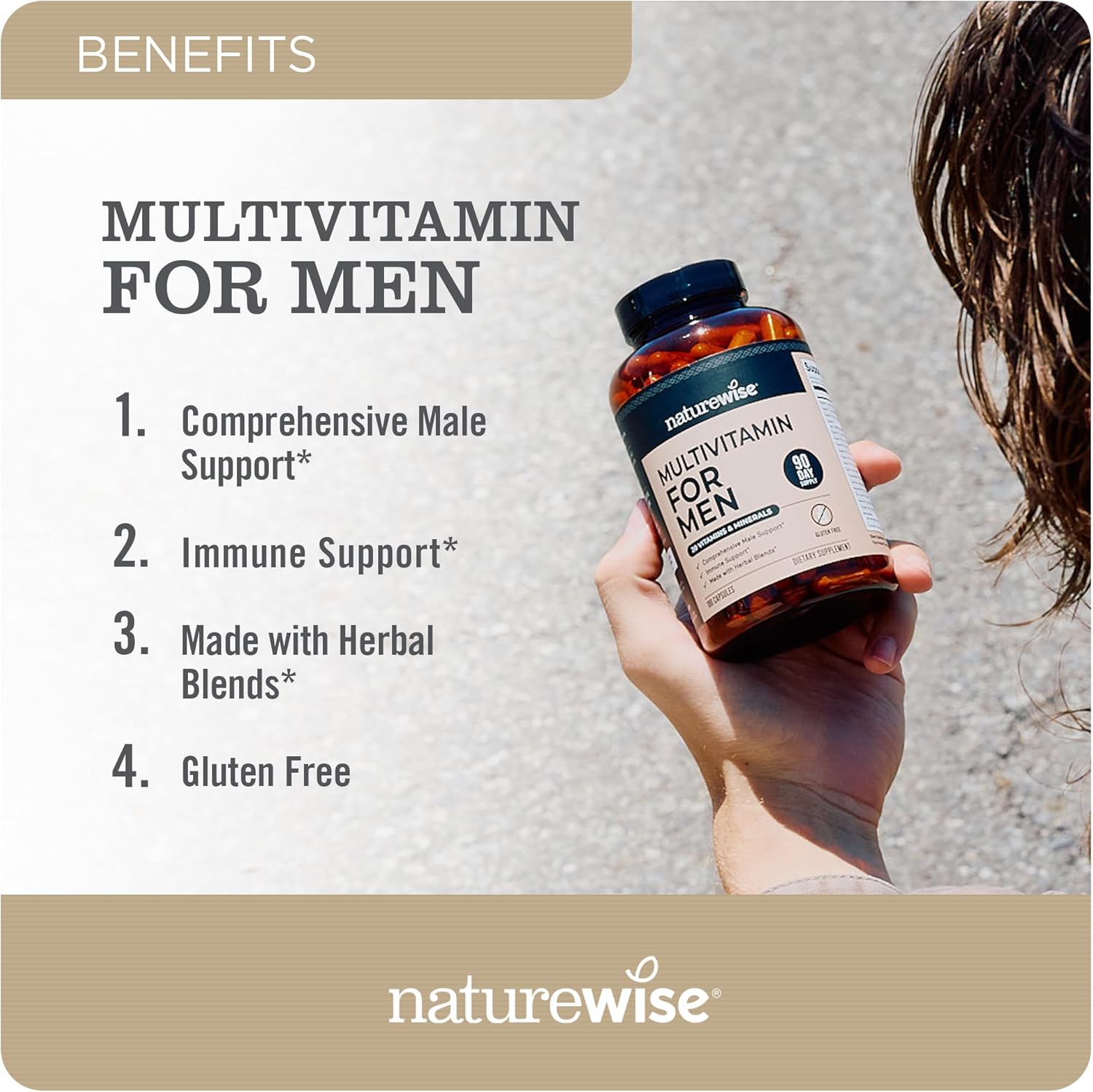 Naturewise Multivitamin For Men - Daily Male Support - Minerals & Herbs For Energy, Performance, Immunity - With Vitamin A, C, D, B-Complex - Soy & Gluten-Free, Non-Gmo - 60 Capsules[1-Month Supply]