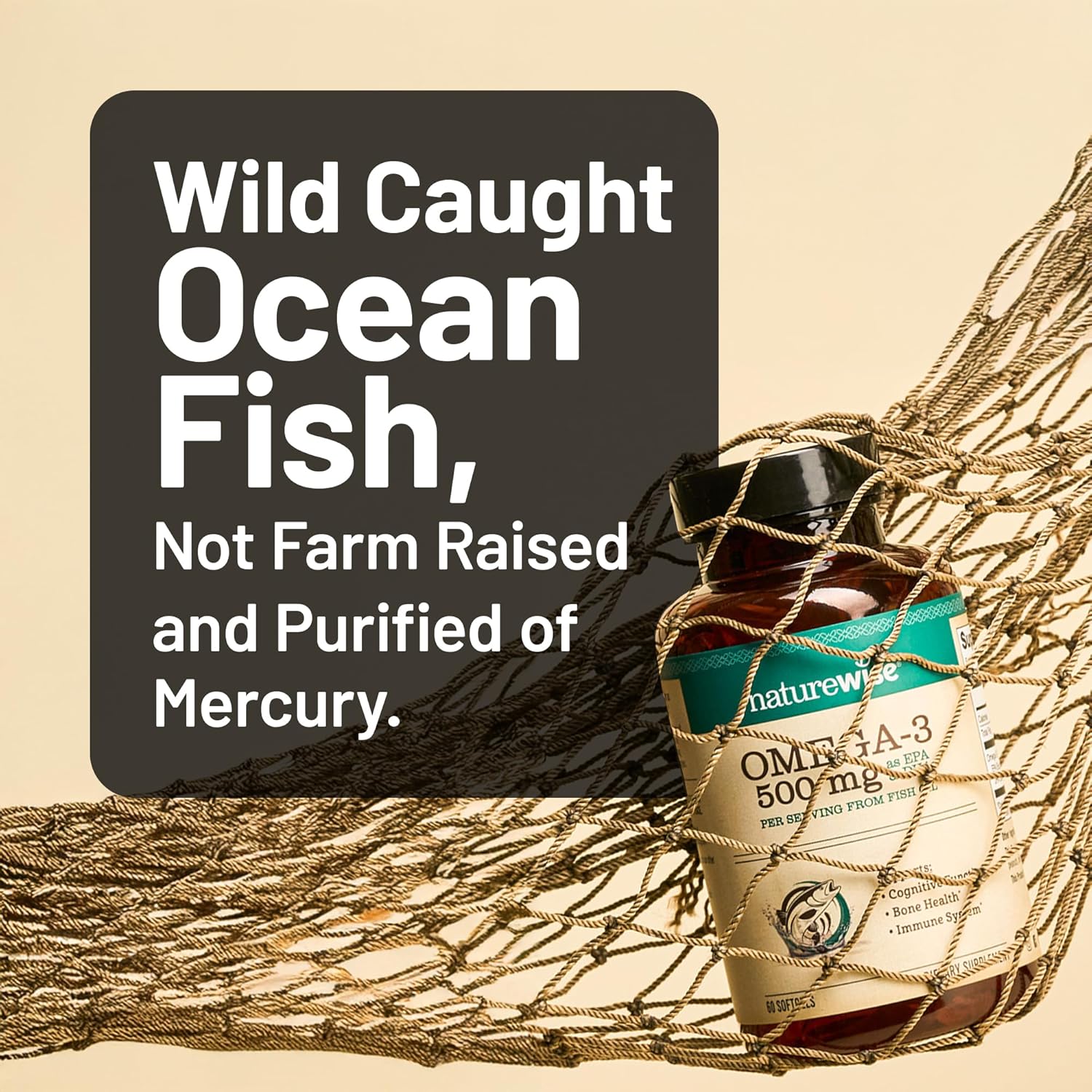 Naturewise Omega-3 500Mg Softgels Deliver 500Mg Of Omega-3 Fatty Acids In Each Softgel. Omega-3 Essential Fatty Acids May Support Your Overall Immune Health And Cognitive Function.* Omega-3 Fatty Acids Also Support Overall Joint Health, Comfort, And Flexibility. Naturewise Omega-3 500Mg Softgels Contain A High-Quality Blend Of Fish Oils To Deliver The Best Source Of Omega-3 Fatty Acids. Our Omega-3 Supplement Is Made With Premium Omega-3 Fish Oils With Epa And Dha Fatty Acids, So Your Body Gets Support For Your Overall Immune And Cognitive Health.* Every Softgel Delivers 300Mg Of Epa Fatty Acids And 200Mg Of Dha Fatty Acids From Wild-Caught Fish. Naturewise Omega-3 Softgels Are Gluten-Free And Gmo-Free. These Softgels Do Not Contain Wheat, Gluten, Eggs, Soy, Milk, Peanuts, Tree Nuts, Shellfish, Or Sesame Seeds. This Product Contains Fish (Anchovy, Mackerel, Sardine). *Statements Regarding Dietary Supplements Have Not Been Evaluated By The Fda And Are Not Intended To Diagnose, Treat, Cure, Or Prevent Any Disease Or Health Condition