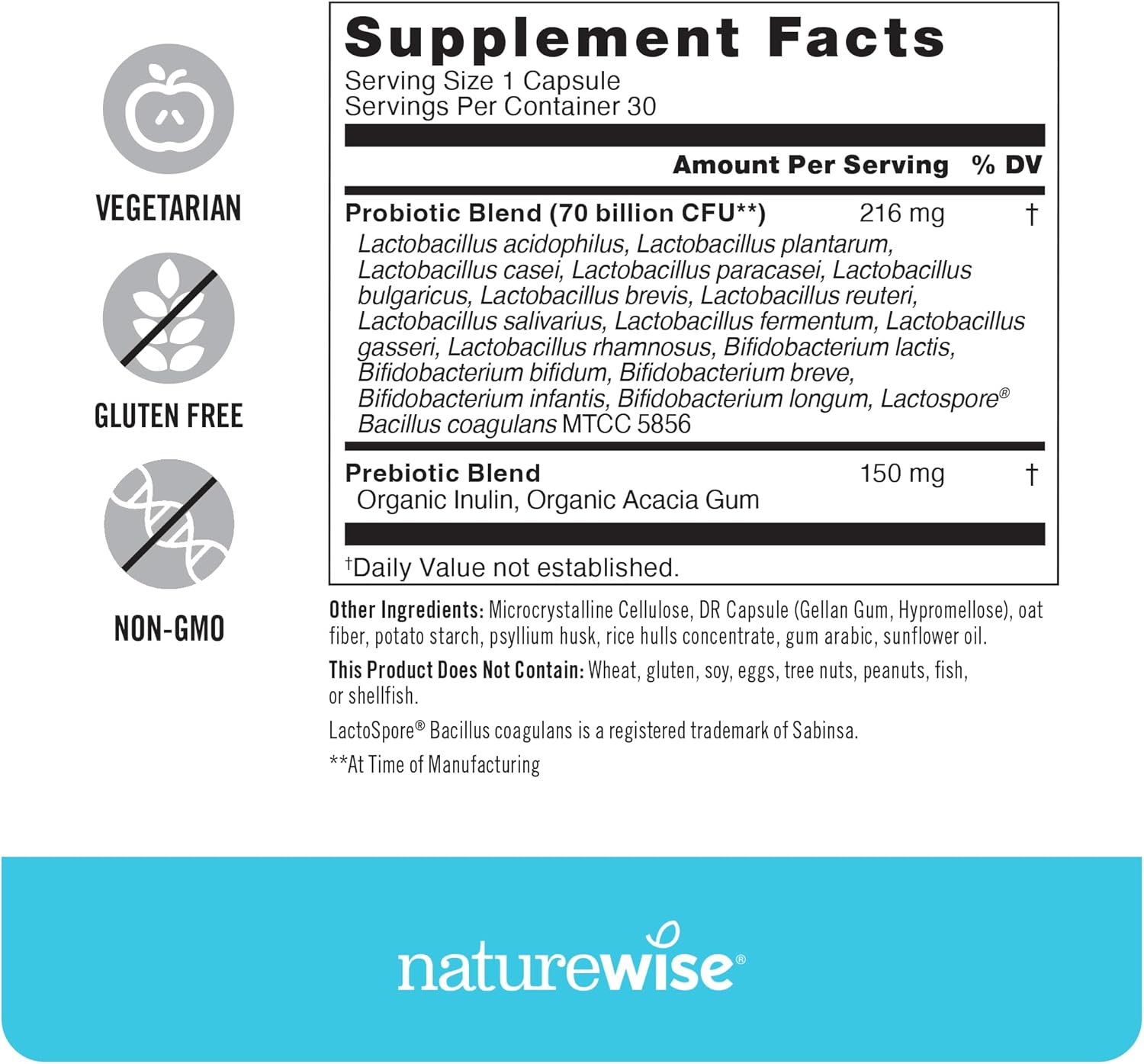 PREMIUM INGREDIENTS: NatureWise 70 Billion CFU Probiotics are manufactured in the USA with high-quality ingredients from around the world in a cGMP-certified facility with third-party quality control audits