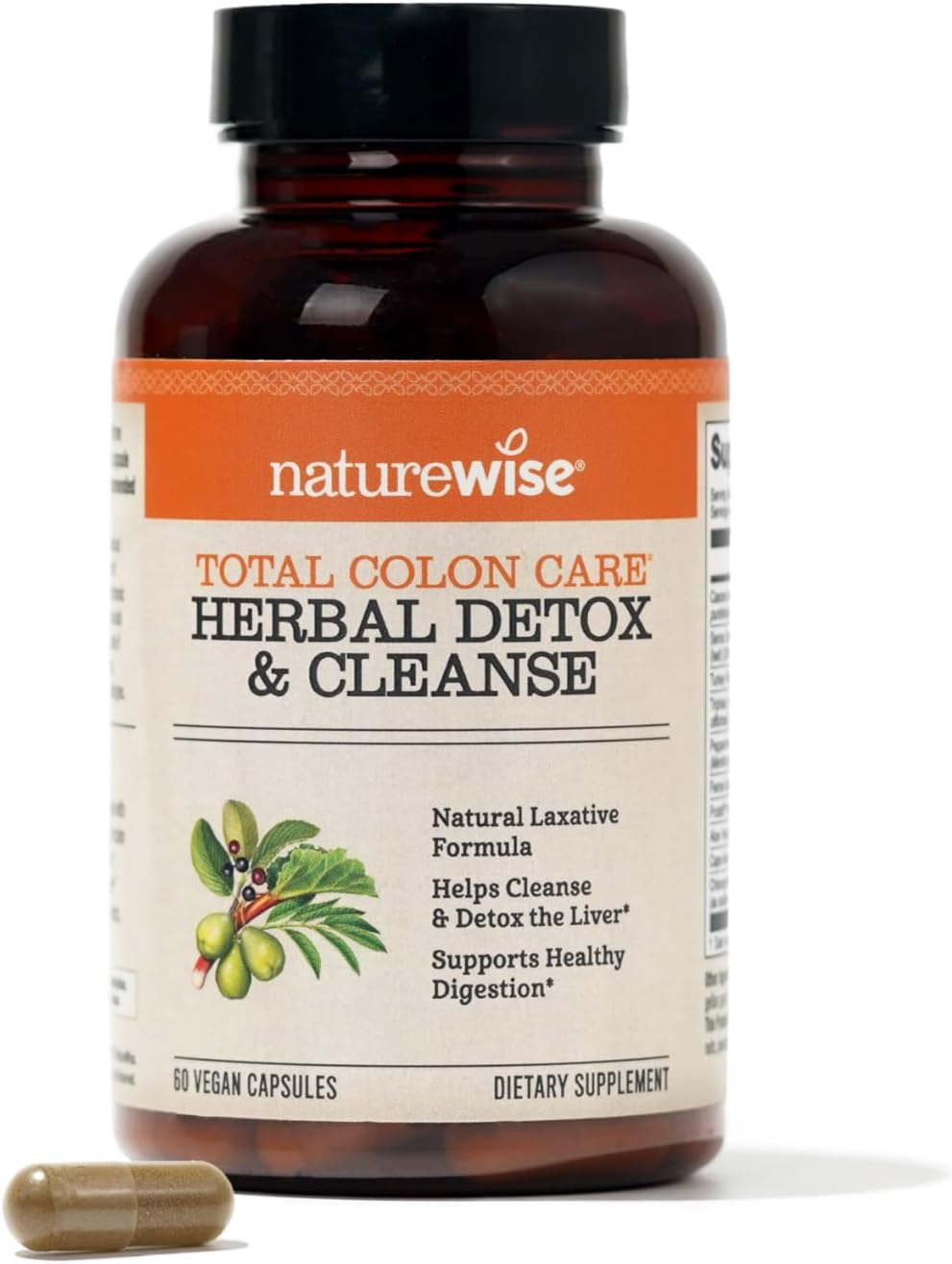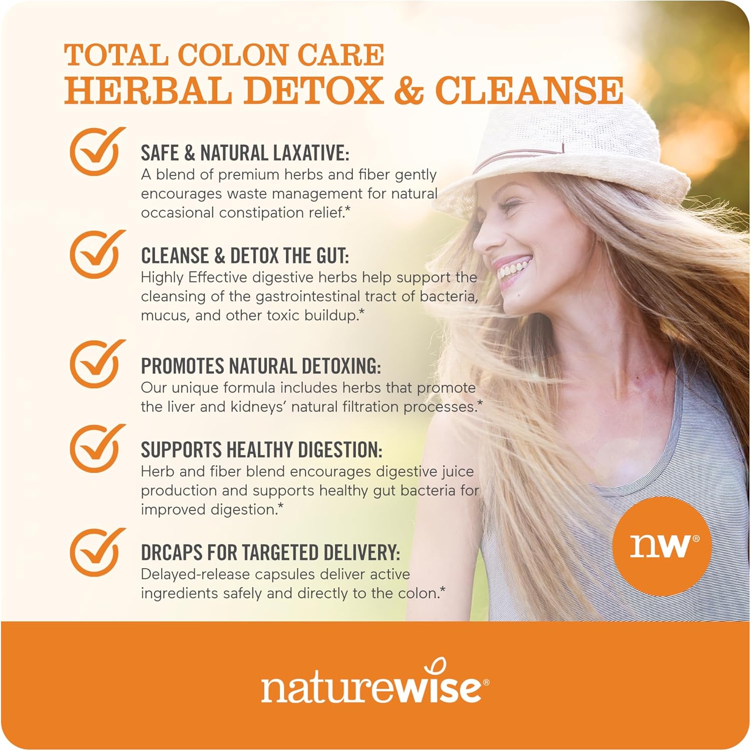 Naturewise Total Colon Care Herbal Cleanse - With Prebiotics, Botanicals, & Antioxidants - For Regular Bowel Movement, Digestion, Gut Health - Vegan, Gluten-Free, Non-Gmo - 60 Capsules[2-Month Supply]