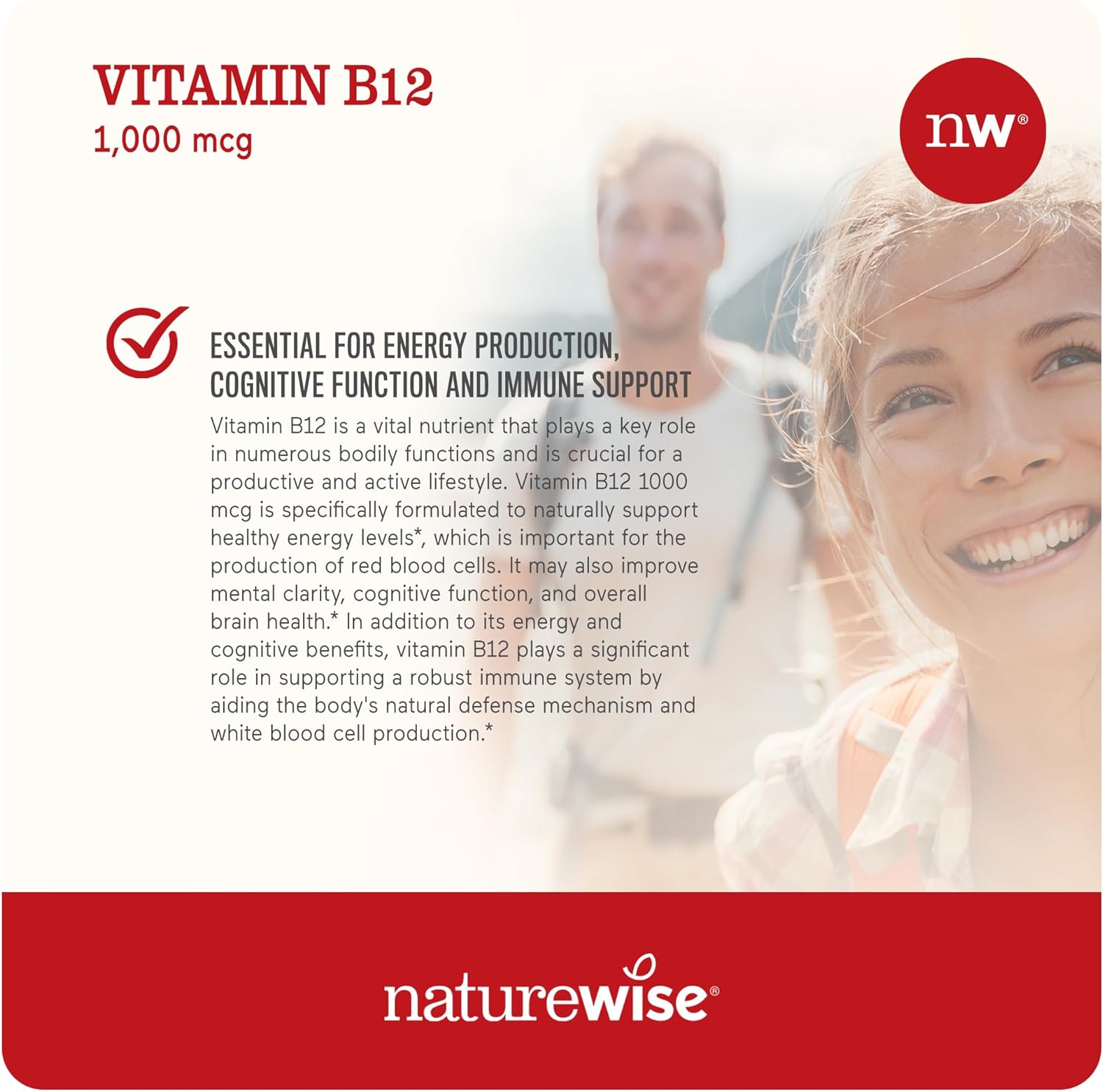 Elevate your vitality with NatureWise Vitamin B12 1,000 mcg, a convenient way to support energy production and overall wellnessSupport the balance of your healthy metabolism with 1,000 mcg of Vitamin B12, a key nutrient that plays a crucial role in converting food into energyEnhance cognitive function and mental clarity with Vitamin B12's potential role in brain health and nervous system supportSupport heart health by helping to support healthy homocysteine levels, a marker associated with cardiovascular well-beingIncorporate NatureWise Vitamin B12 1,000 mcg into your daily routine to nourish your body, boost your energy, and seize the day with renewed vigorEnergize your life with NatureWise Vitamin B12 1,000 mcg Softgels, the key to a vibrant and active you. B12 is a vital nutrient that plays a crucial role in maintaining healthy nerve function, red blood cells, and DNA synthesis. If you're looking to enhance your energy levels, support mental clarity, and promote overall well-being, these softgels are your perfect daily companion. Our high-potency formula ensures you get the B12 your body needs in a convenient and easy-to-absorb softgel form. Whether you're a busy professional, an active parent, or simply looking for a natural energy lift, NatureWise has got you covered. Say goodbye to sluggish days and hello to a revitalized you. Trust in NatureWise's commitment to quality, as our Vitamin B12 softgels are vegan, gluten-free, and rigorously tested for purity. Vitamin B12 isn't just about energy; it's a wellness powerhouse. Elevate your cognitive function and mental clarity, promote balanced energy levels, and support heart health by supporting healthy homocysteine levels. With each softgel, you're embracing a holistic approach to well-being