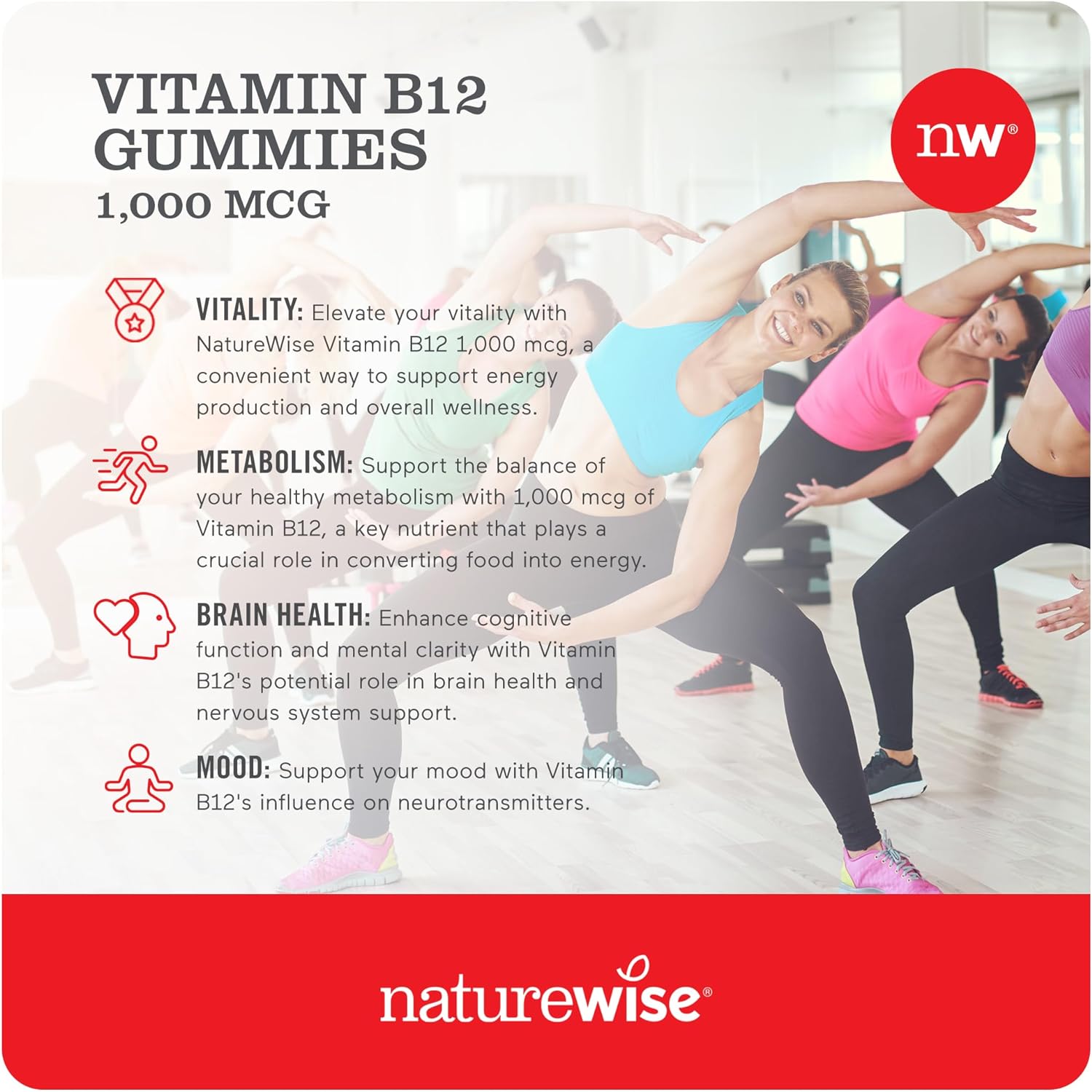 DESCRIPTION : NatureWise Vitamin B12 1,000 mcg Strawberry Lemon Flavored Gummies to Support Mental Clarity & Cognitive Function + Energy Support for Maximum Vitality 90 Gummies